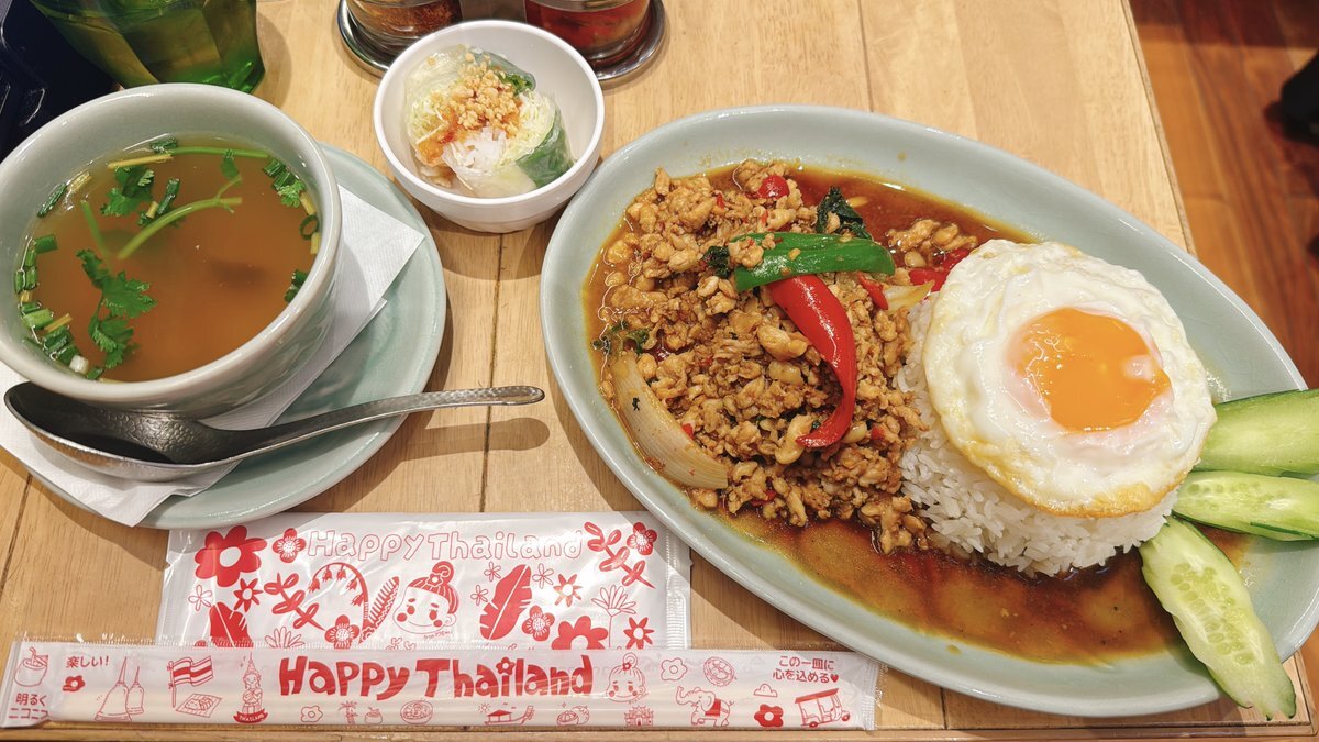 魅力的なランチメニューがたくさんあっていつも散々迷いますが 9 割りはエビアボカドグリーンカレーを頼みます😋 こんなにグリーンカレーをアピールしておいて添付写真は 店頭で公表されている人気のランチメニュー #ガパオライス と #カオマンガイ です🤤 #企業公式つぶやき部 #受付担当のお気に入り pic.x.com/LYkt7gIhvi
