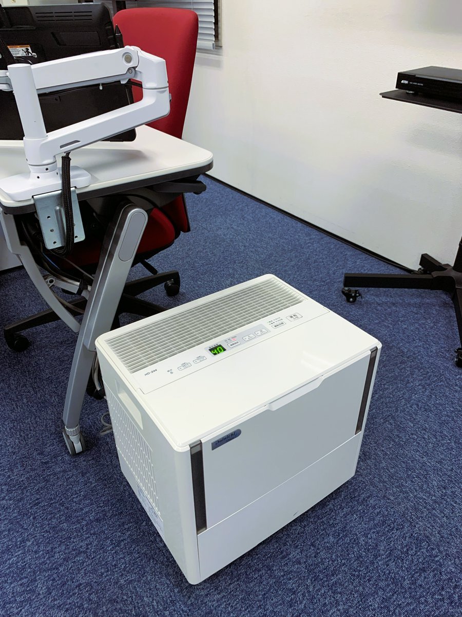 おつかれさまです☺️ #illuminatejapan #受付担当 です❣️ 今日は、この時期、弊社の必須アイテムを紹介します! 研修ルームの前後で終日 2 台稼働している #加湿器 です💧🌿 #企業公式がお疲れ様を言い合う #企業公式つぶやき部 #受付担当のお気に入り pic.x.com/9PTW7bATRX