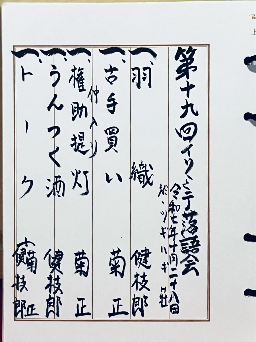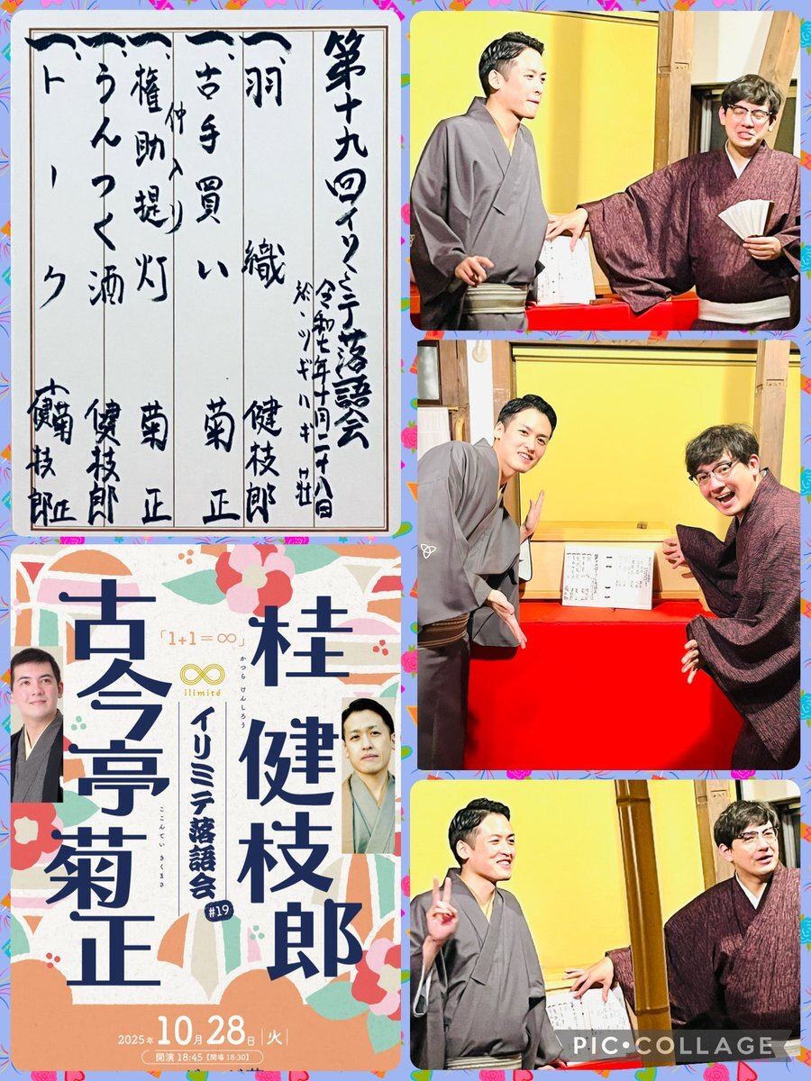 2025/10/28 イリミテ落語会#19 #桂健枝郎 #古今亭菊正 健枝郎サン が珍品"羽織"…菊正サンも羽織が登場する"古手買い"という洒落た前半 早くもこのお2人らしい展開に北叟笑む😁"権助…"も上方では珍しい噺 "うんつく酒"は健枝郎サンなんと初演✨だったそう😳! pic.x.com/KcKxTmmQw9