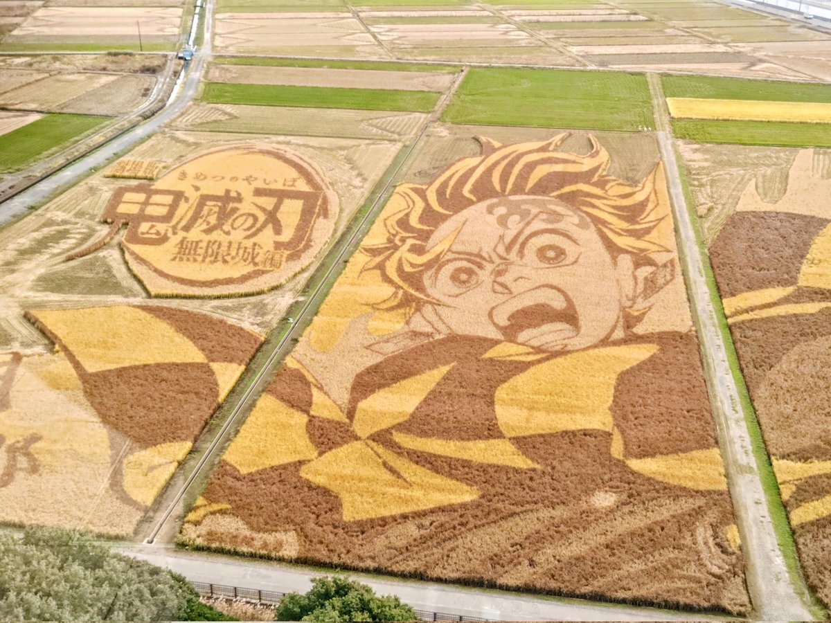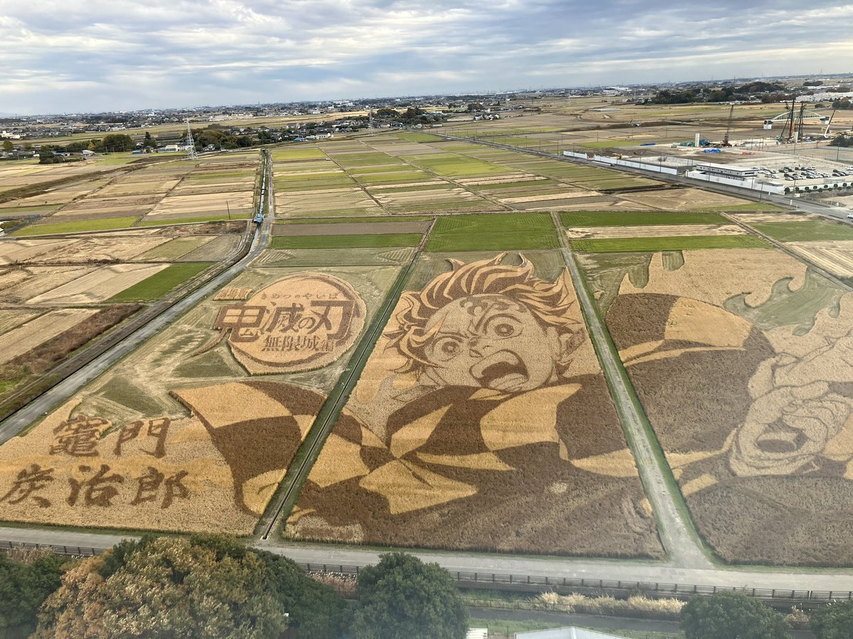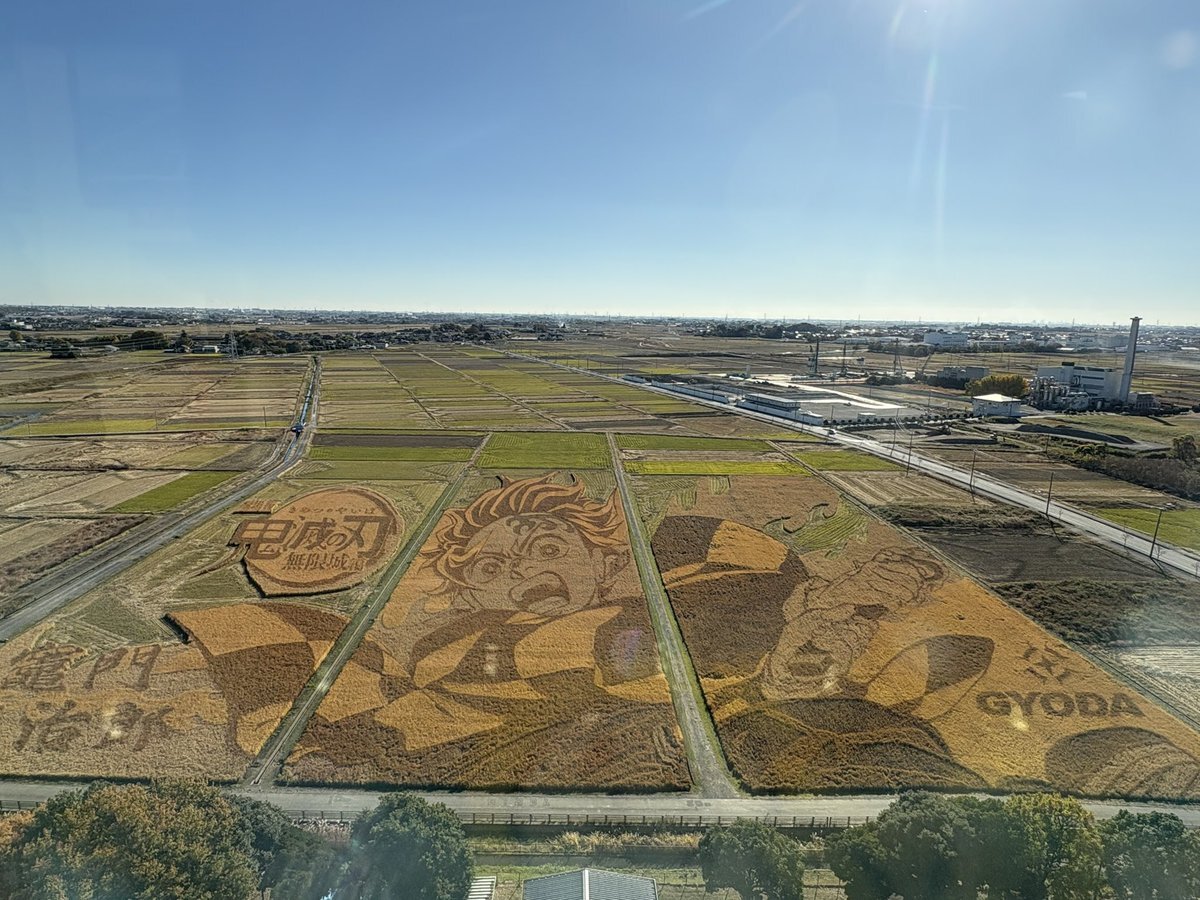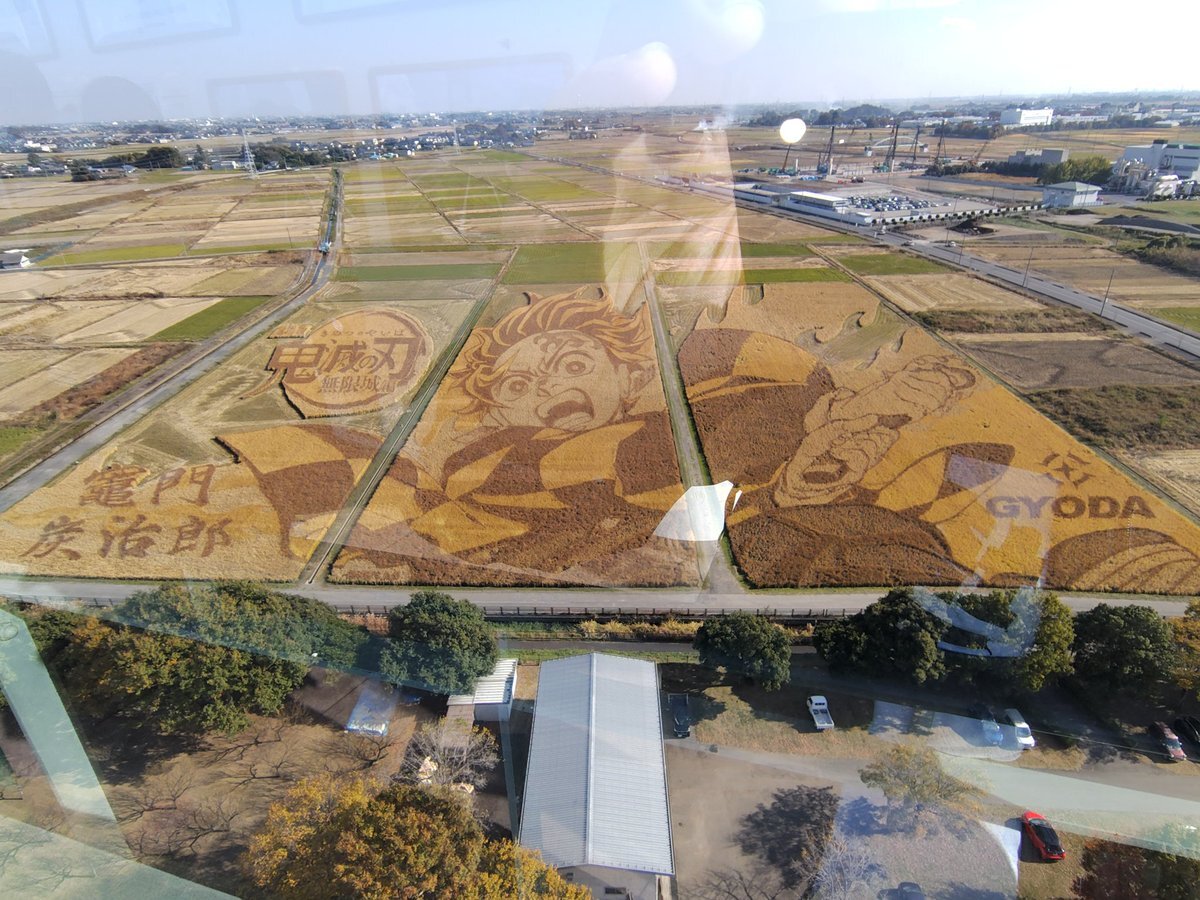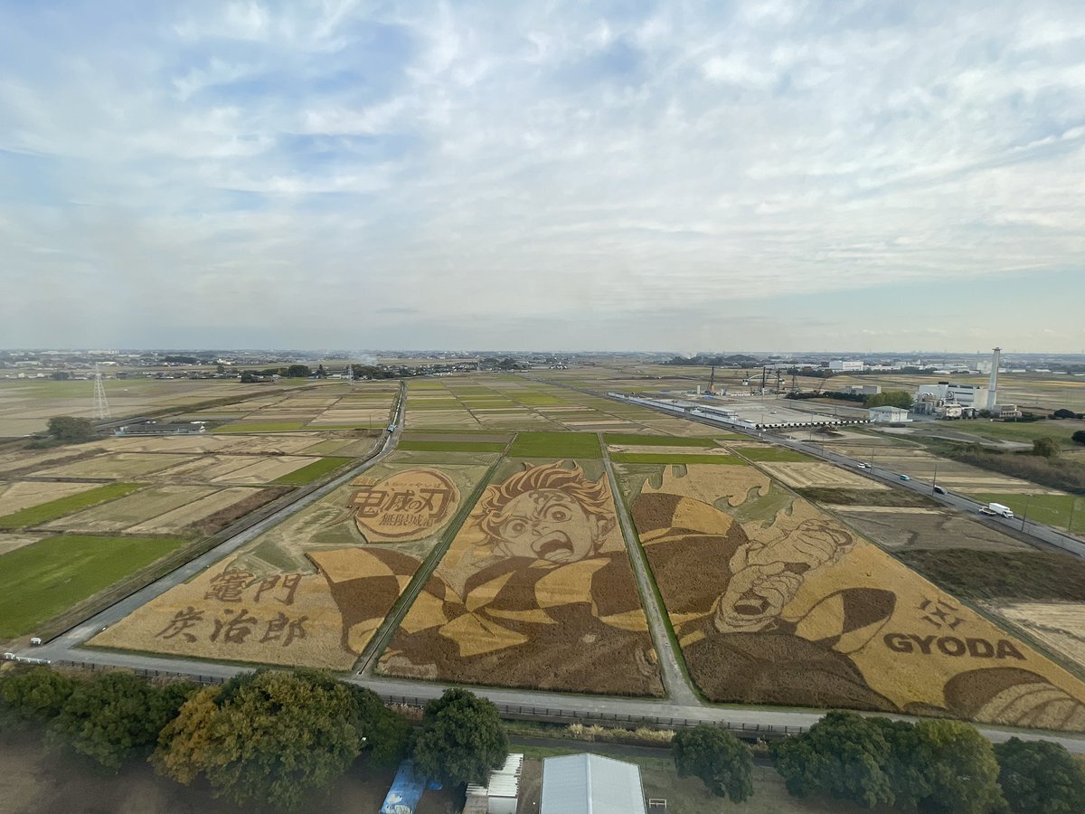『劇場版「鬼滅の刃」無限城編』とコラボした行田市田んぼアートは12月1日に稲刈り予定です。現在は夏の青々とした炭治郎とまた異なる秋色の炭治郎が楽しめます。世界最大級の炭治郎を刈り取り前にぜひ行田タワーからご覧ください。 #埼玉県 #行田市 #田んぼアート #鬼滅の刃 #古代蓮の里 #DemonSlayer pic.x.com/9dq2PiJY2P