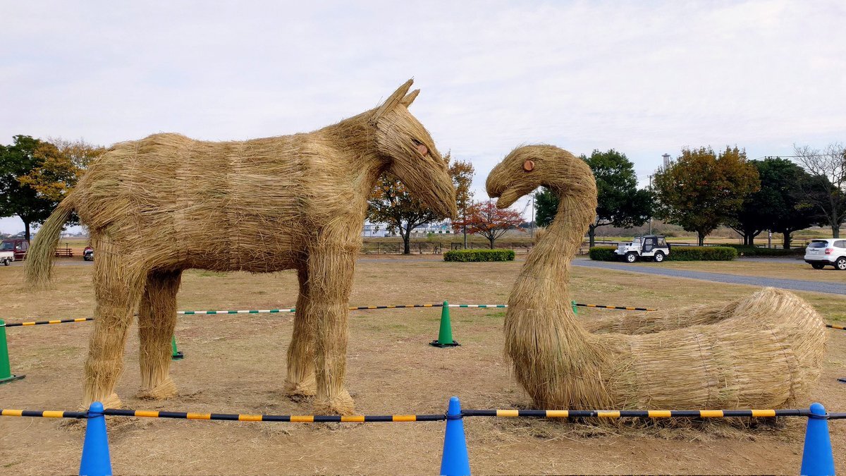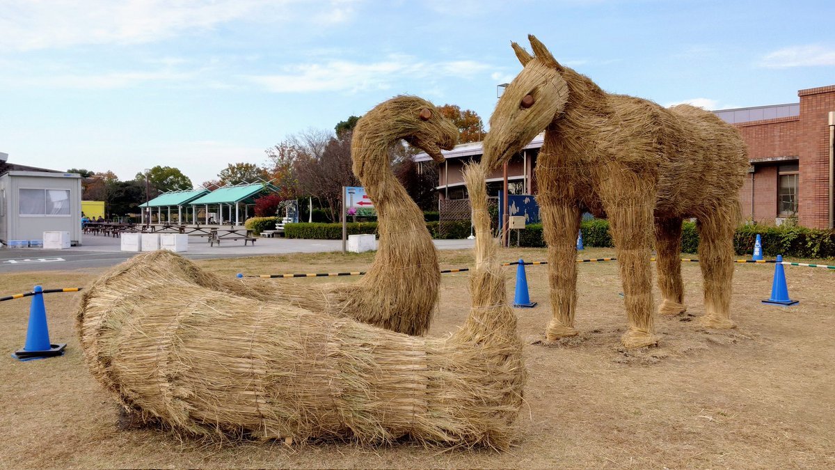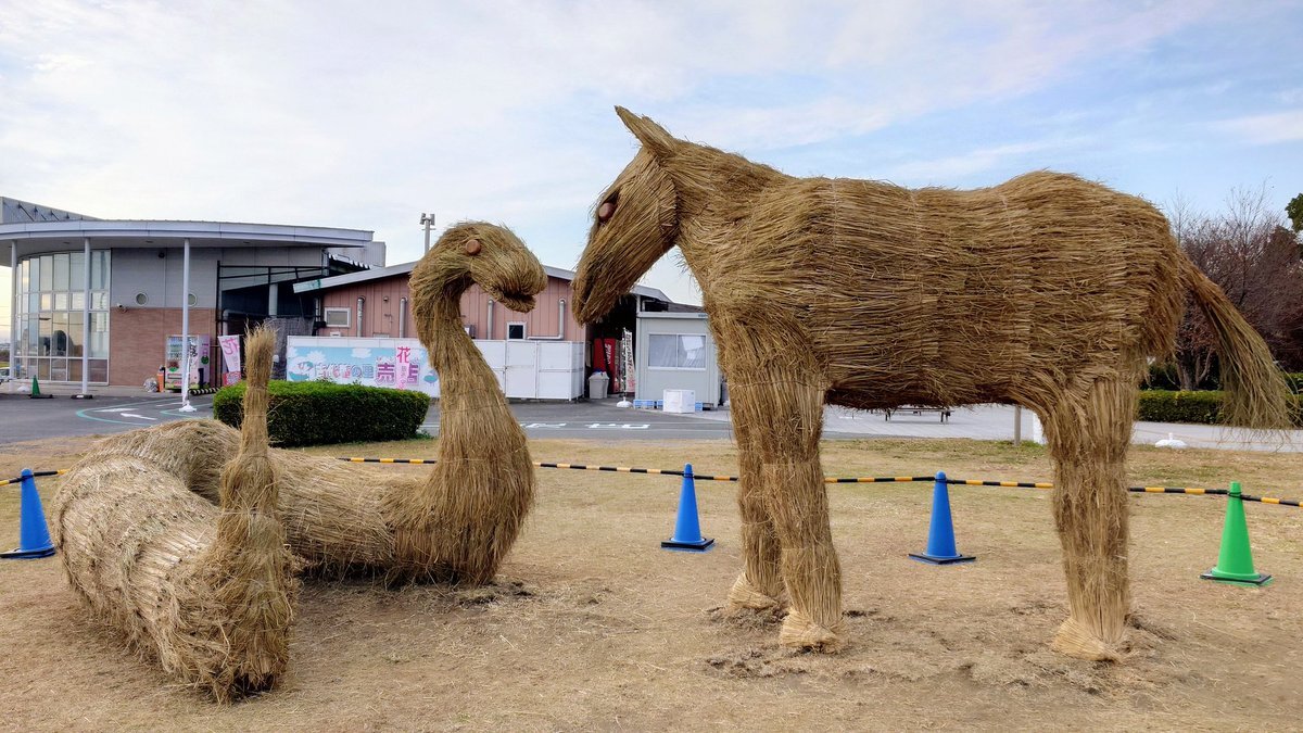 な・ん・と!(◉ω◉) 夕食を仕入れようと古代蓮の里に立ち寄ったところ、密かに #わらアート が製作されていました かつてのわらアートに比べると「ほっこり」レベルですが… ヘビと馬かな? おそらく多分100% 干支の交代劇かと! 2025年🐍→2026年🐎 #行田市 #古代蓮の里 #わらアートまつり pic.x.com/LqrcqeDkhY