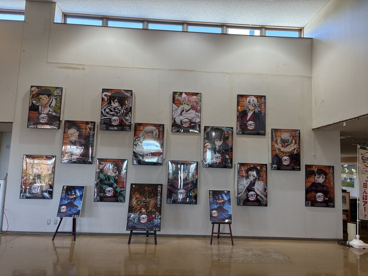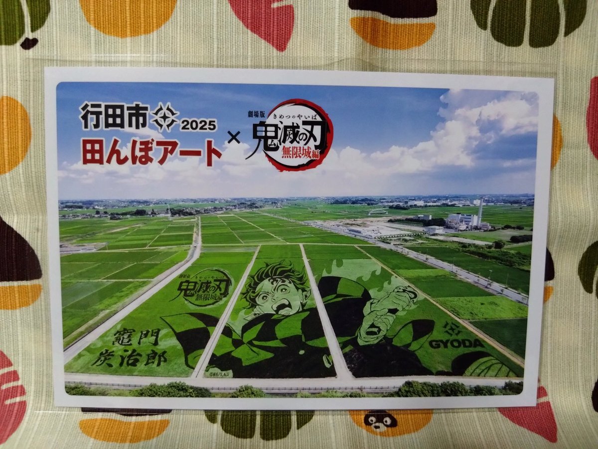 #田んぼアート  ようやく見れました🎨 立体的で黄金色も良き✨️  花江夏樹さんの声が館内に響き、閉館のアナウンスまであり感激(о´∀`о) ポストカード貰いました⚔️   鬼滅グッズはほぼ完売で、Tシャツ欲しかったな(´;ω;`)ウッ… #行田市 #古代蓮の里   #鬼滅の刃 #花江夏樹 pic.x.com/1MUDI1CIif