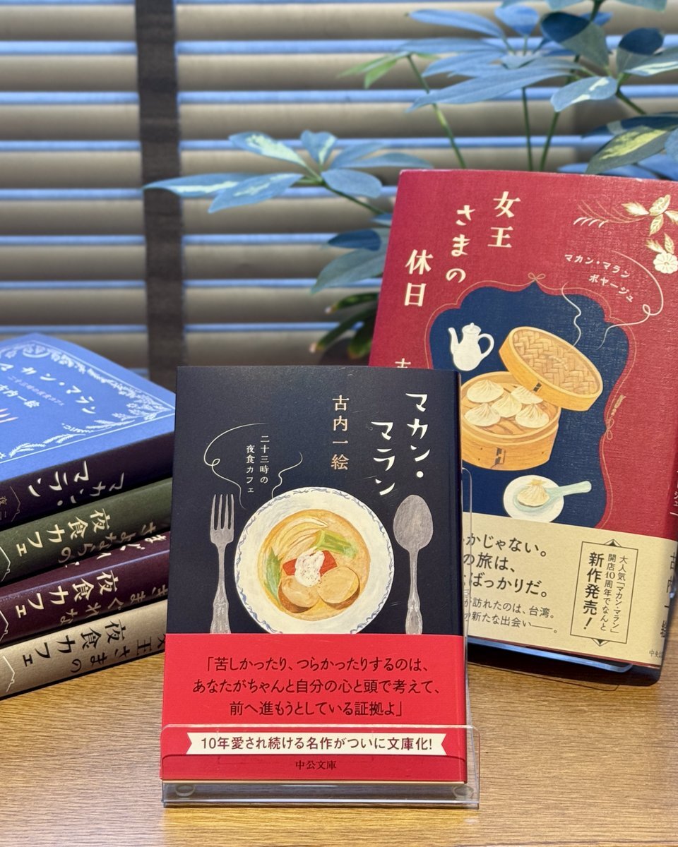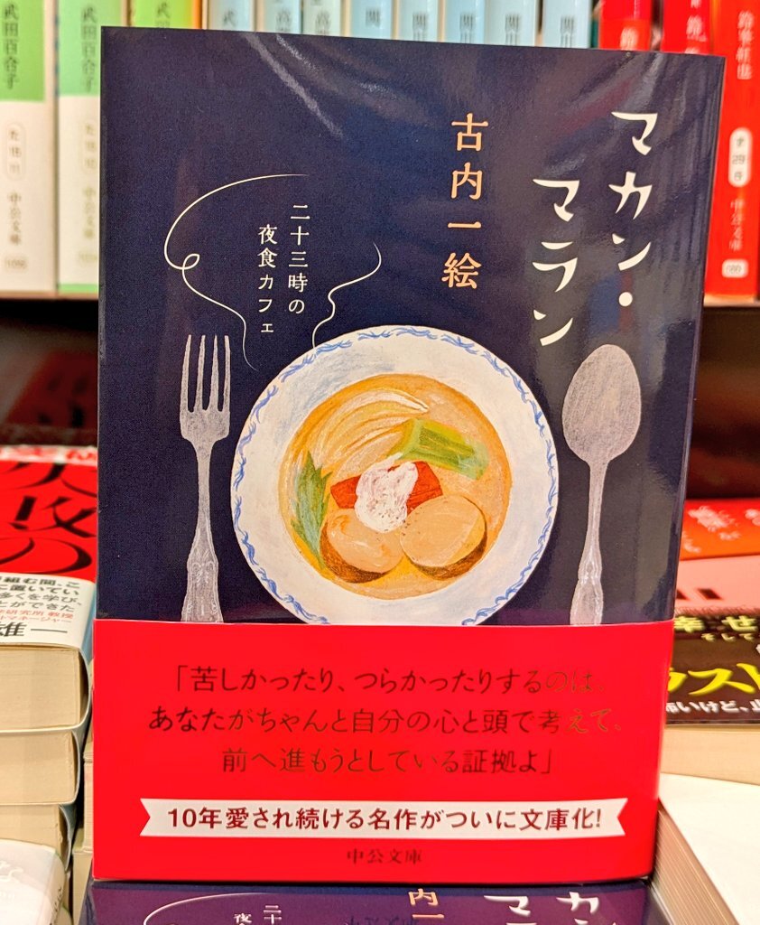 📢新刊情報📚 ある町の路地裏に元超エリートのイケメン、そして今はドラァグクイーンのシャールが営むお店がある。様々な悩みを持つ客に、シャールが饗する料理とは? 「マカン・マラン 二十三時の夜食カフェ」 待望の文庫化です! 本日入荷いたしました✨ #文庫新刊 #古内一絵 #中央公論新社 pic.x.com/ukEhD2WBUc