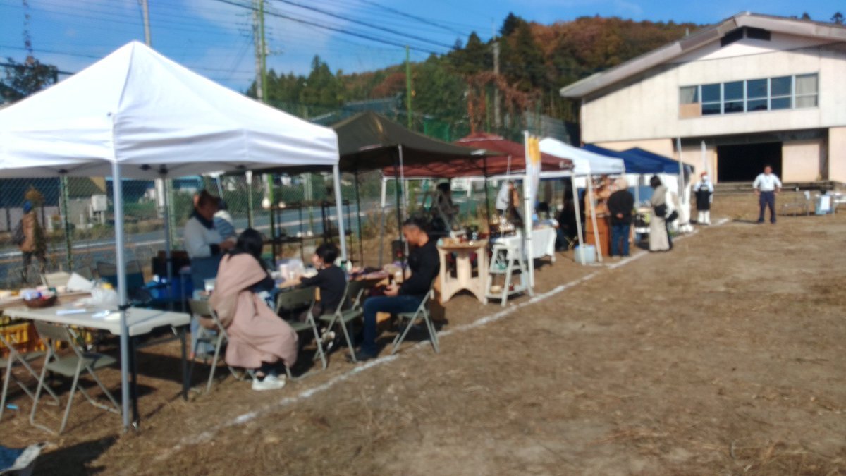 本日は #古内茶庭先カフェ ‼️ メイン駐車場の旧古内小がめっちゃ賑わってる‼️(笑) どんぐりファームさんもいたよ‼️レンコン買っていってください☺️ 養蜂家のながしまさんも出店してます。蜂蜜も買っていって❗☺️ pic.x.com/kNHShc6tcs