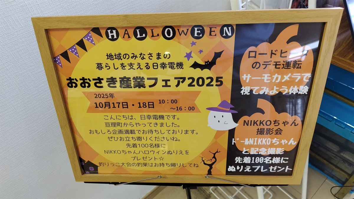 今日から #タカカツアリーナ大崎 ( #古川総合体育館 )で #おおさき産業フェア2025 開催してます🎃 #日幸電機仙台営業所 のブースは #NIKKOちゃん ドールがお待ちしております🙇 盛りだくさんですので是非遊びに来てね😉 #おおさき産業フェア #仙南広域工業会 #日幸電機 #大崎市 pic.x.com/KAMi8ri73E