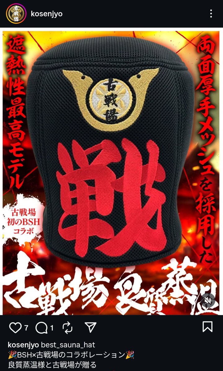 🎉BSH×古戦場のコラボレーション🎉 良質蒸温様 @best_sauna_hat と古戦場が贈る 虚無僧サウナハット…いや、兜❗ 遮熱性最高モデル⚔️ サウナという己の戦場に 兜を被っていざ、出陣じゃー‼️🔥 今月末販売予定 限定50個 17810円込 予約受付開始 今月末までの予約特典 古戦場トートバッグが🥳 #古戦場