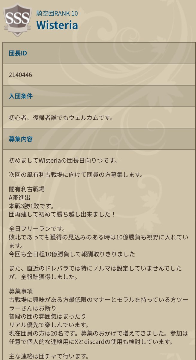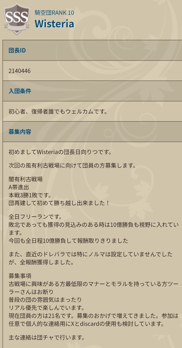 次回風有利古戦場へ向けて まだまだ団員募集しています! 一緒に頑張りませんか? 遂に21名!団サポ枠増えました〜! 嬉しい! 古戦場頑張ります #グラブル #古戦場 #団員募集 pic.x.com/BUdJXHQNPW
