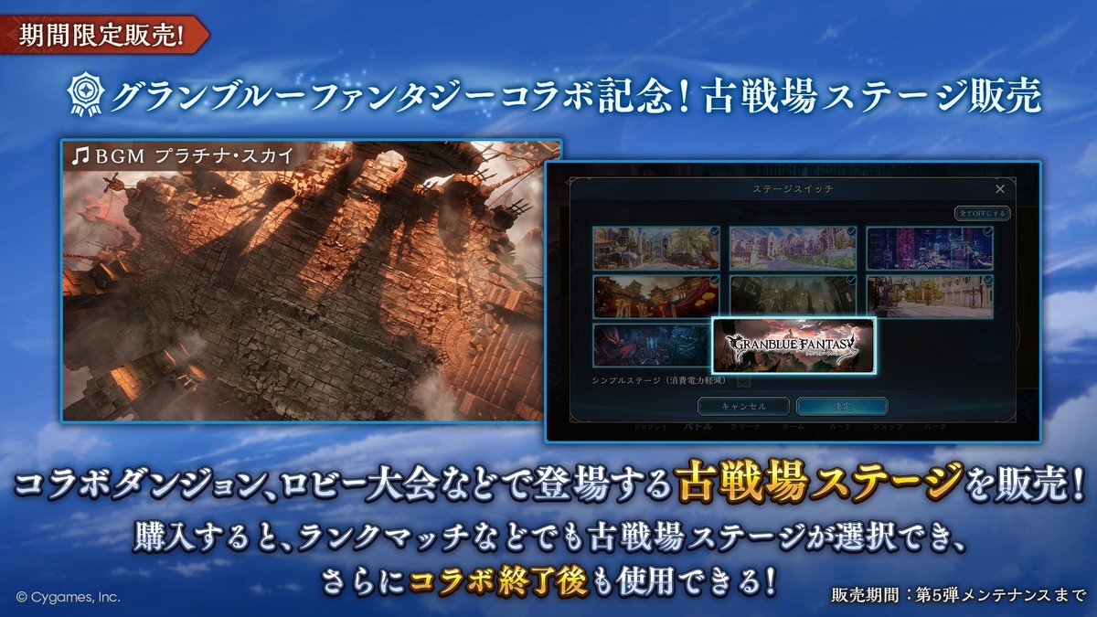 【あの古戦場ステージを販売中!】 購入すると、コラボ終了後でも使用できる「古戦場ステージ」をサプライショップにて販売中! ぜひチェックしてみてください✨ 📅販売期間 第5弾メンテナンスまで #シャドバWB #グラブル
