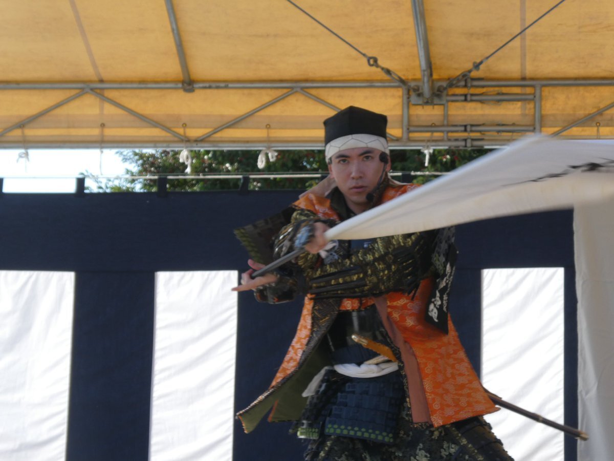 10/13(月·祝)#垂井町戦国演義 にて、#古戦場おもてなし武将隊関ケ原組 による、 甲冑劇『#暁笛一心 〜篠笛よ響け 戦の約束〜』の1回目の #細川興元 様です。 pic.x.com/wALZcpEkdx