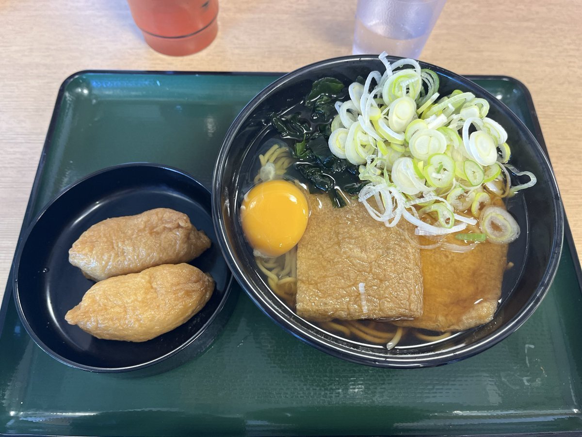 古淵 箱根そば古淵店 きつねそば+生たまご+ネギ+いなり寿司 正直ポカした きつねなのにいなり付けちまった #立ち食いそば #古淵 pic.x.com/fYBImeZ9w2