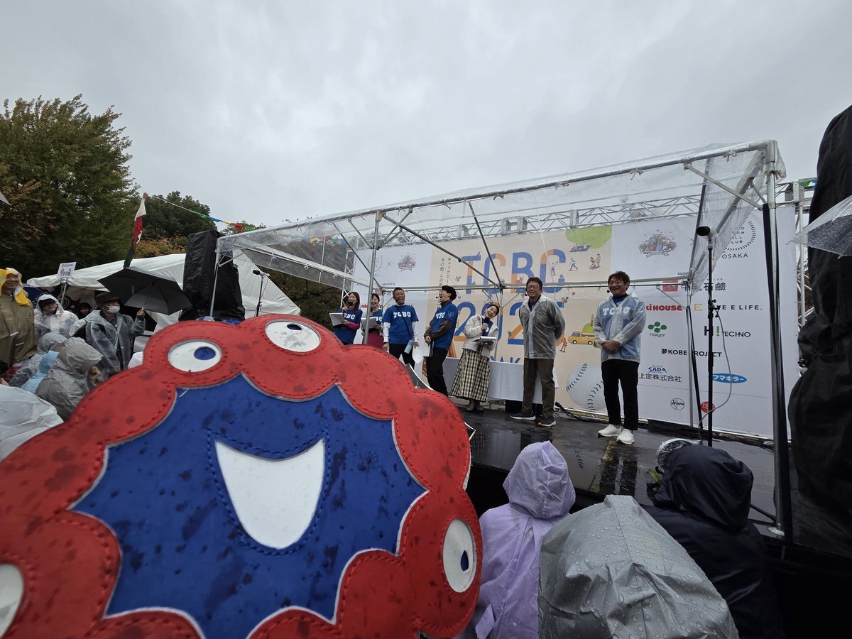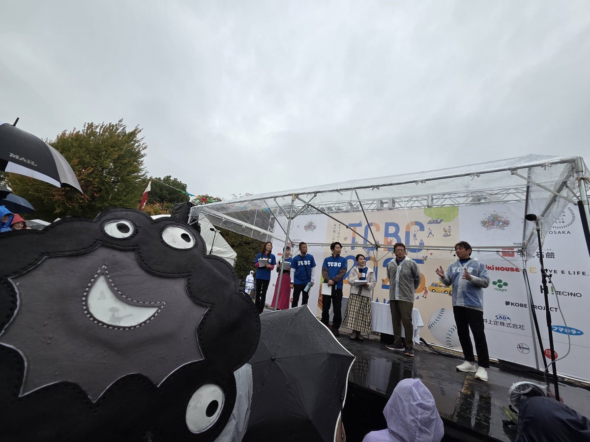 古田さんとミャクミャク ABC ラジオ祭でのキャッチボール大会(TCBC)にて。あいにくの雨で肝心のキャッチボールは中止になったけど記念撮影で古田さん、浜中さんにミャクミャクを持って頂いてパシャリ📷 「え~っ、ちゃんとグローブしてるやん」だって😋 #ABCラジオまつり #古田敦也 #ミャクミャク pic.x.com/bKhZNeNf4P