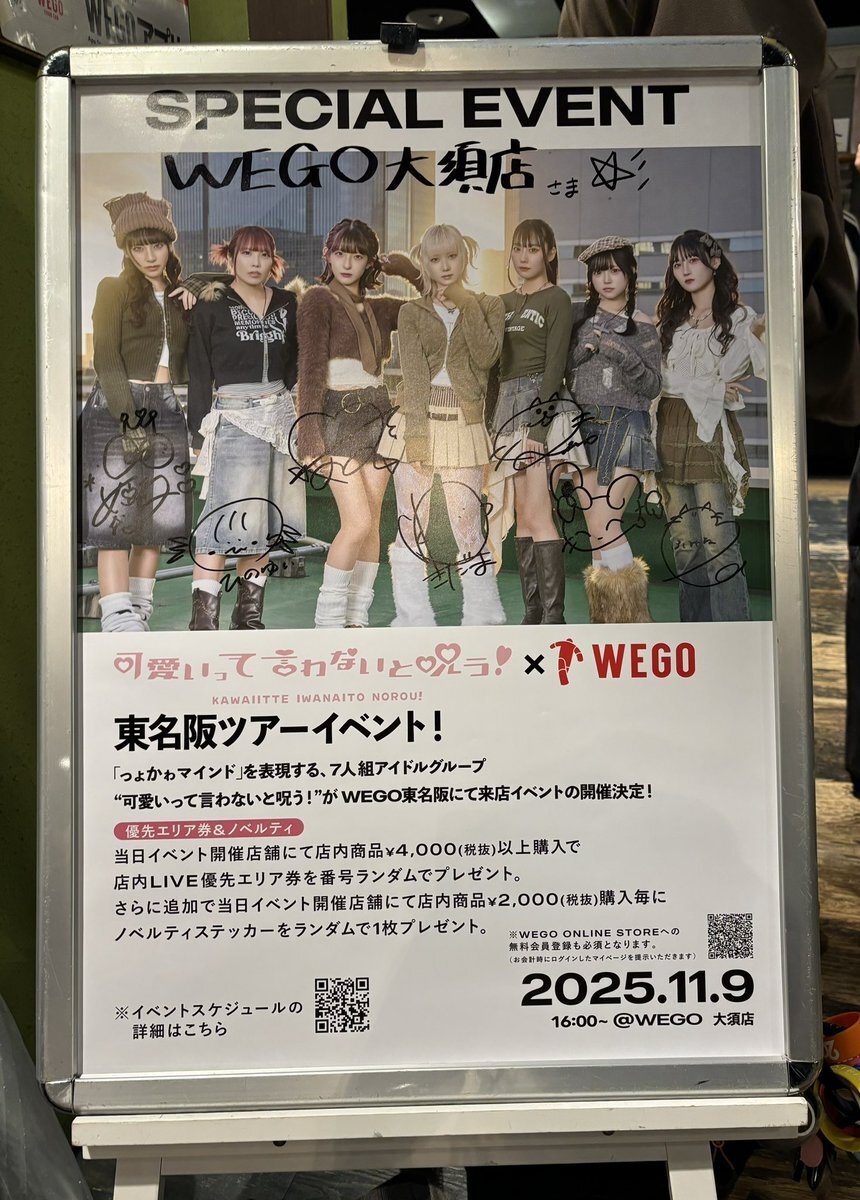 WEGO大須店 東名阪ツアーイベント 11/9 大変お疲れ様でした✨ 私服は言うまでもなく可愛かったですよ🤣🙏 少しずつ明かされていく情報が増えてくと楽しいね😄😄😄 先生可愛いイラストありがとう🙏 #可愛いって言わないと呪う #ひのゆいのひ pic.x.com/iJsWhPJgP8
