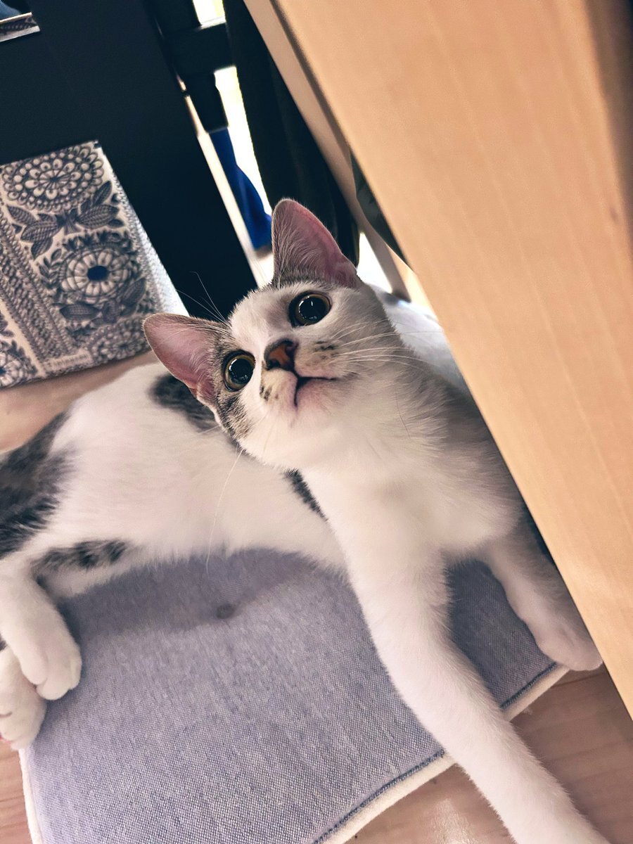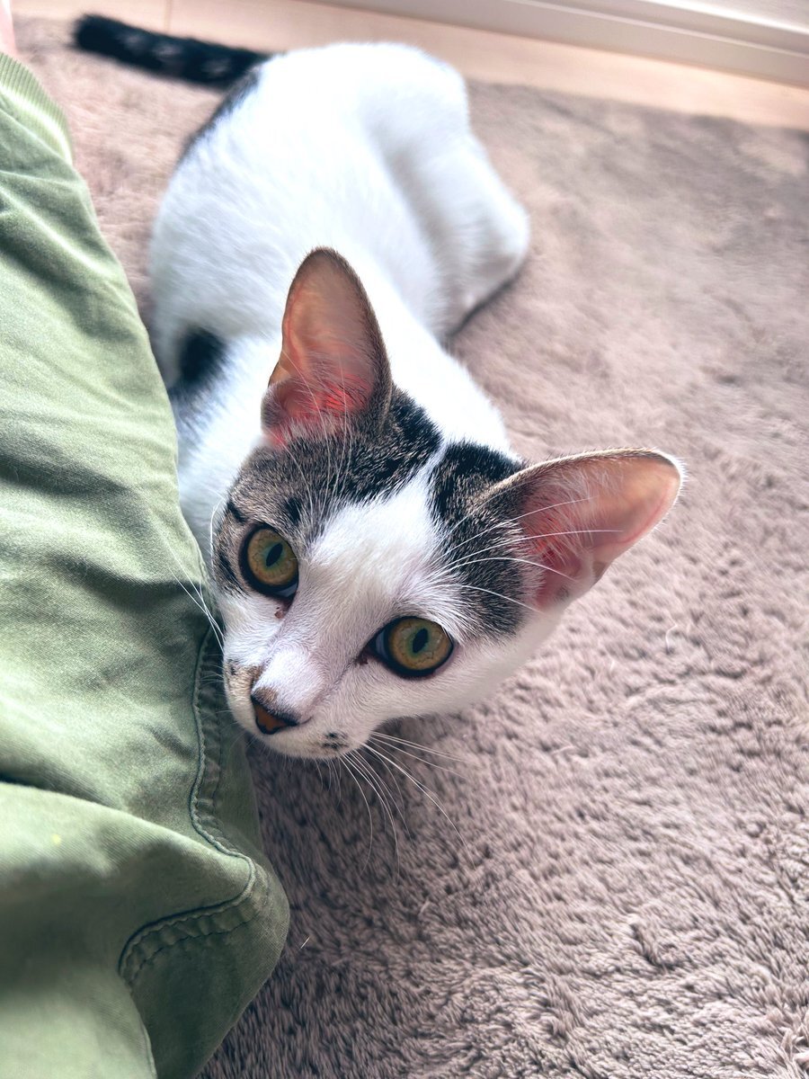家に帰り着き、夕飯を食べ、ひと息. 足元から私の足をチョイチョイ触る可愛い白いおててが見え隠れ…🐾 笑. この小さな可愛いおてては誰かな?と 椅子の下を覗き込んだら可愛い可愛いおチビちゃんが遊んで欲しそうに見ていました🥰✨ #可愛い家猫研修生🐾 #我が家のアイドルななちゃん pic.x.com/IQw3BKqjD0