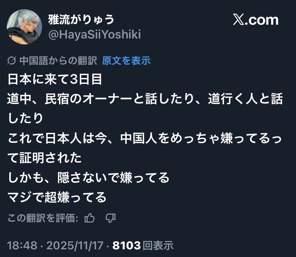 日本旅行中の台湾人の生の声。 x.com/hayasiiyoshiki…