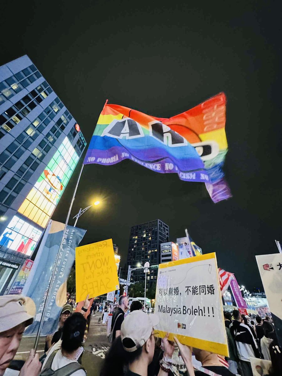 #臺灣同志遊行2024 、雨にも降られず、パレードを完走しました! スタート直前、偶然出会った リュウ@arielcookieliu さんも合流。 沿道に中国語で #青森レインボーパレード をアピールしていただいちゃいました! #TaiwanLGBTplusPride