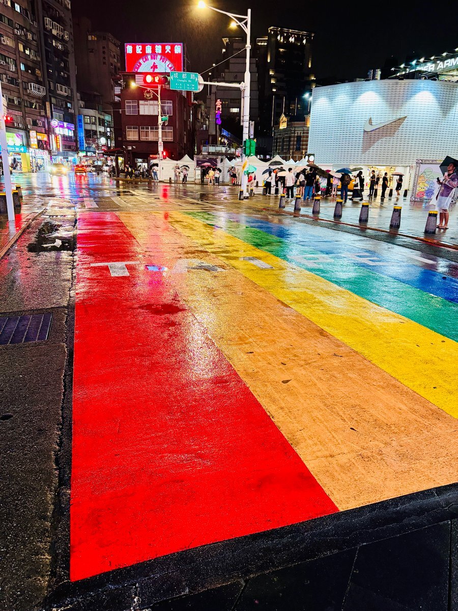 おはようございます。ARPスタッフは #臺灣同志遊行 (台湾LGBT+ブライド)に参加するため、台北に来ております。写真は昨夜(24日)の西門駅前。街じゅうがソワソワしています(みかん) #青森レインボーパレード
