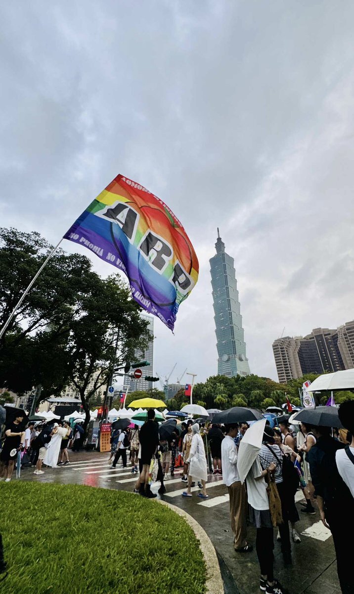 ARPメンバー、無事に #2024臺灣同志遊行 会場にて合流できました。 歩くにはとてもよい気候です。 予報は雨だけど、天気持ってほしい! #LGBTplus #TaiwanLGBTplusPride #青森レインボーパレード