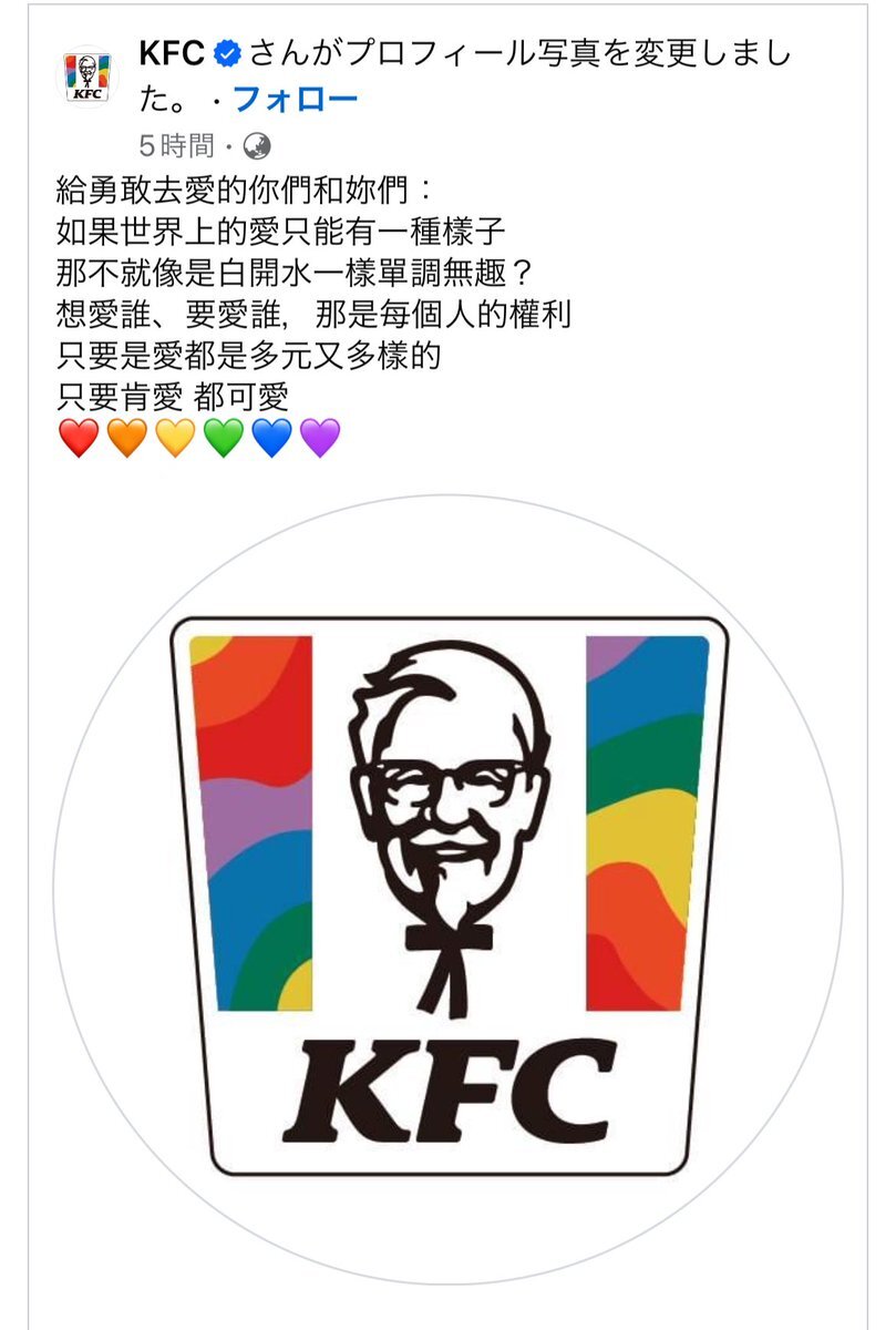 10月末の台湾プライドパレード(台北市)に合わせて、台湾ケンタッキーはロゴをレインボー色にした。#LGBTQ #台湾 #台灣同志遊行 pic.x.com/bsxjU3OjPe