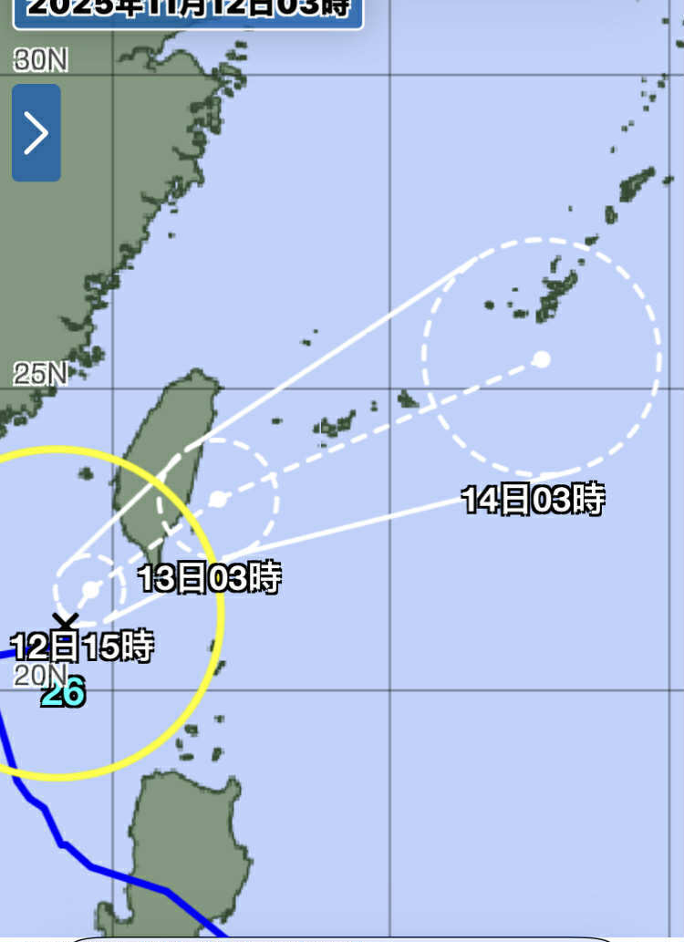 #台風26号 2025年11月13日03時45分発表 #9 #台風第26号(フォンウォン) 現在、与那国島の南西約200km 北東へゆっくり進行中 中心気圧:1002hPa 中心付近の最大風速:20m/s 最大瞬間風速:30m/s FMうるまスタッフブログ ➡ fmuruma.com/e13031407.html #FMuruma #ゆいまーるラジオ #沖縄 #TY202526 pic.x.com/KtUlcSRV6U