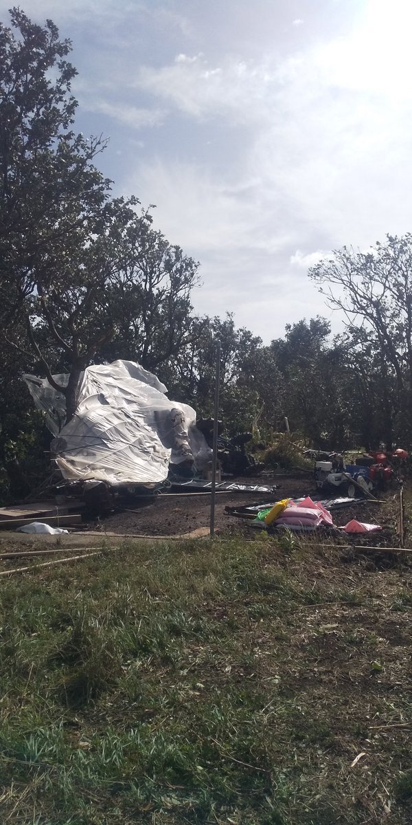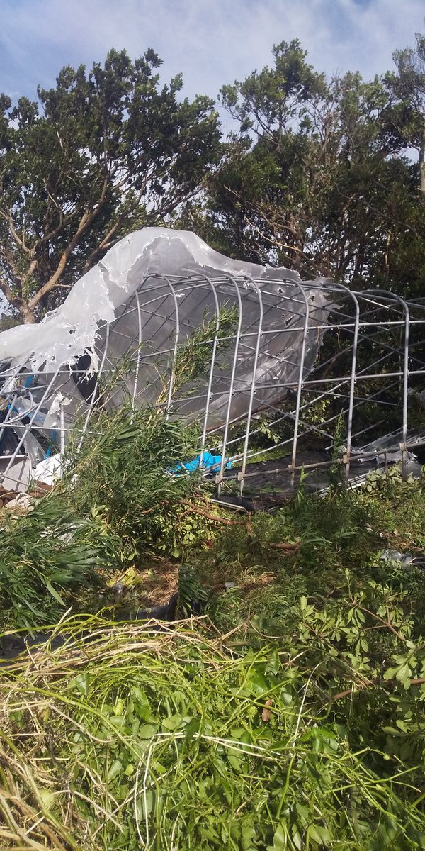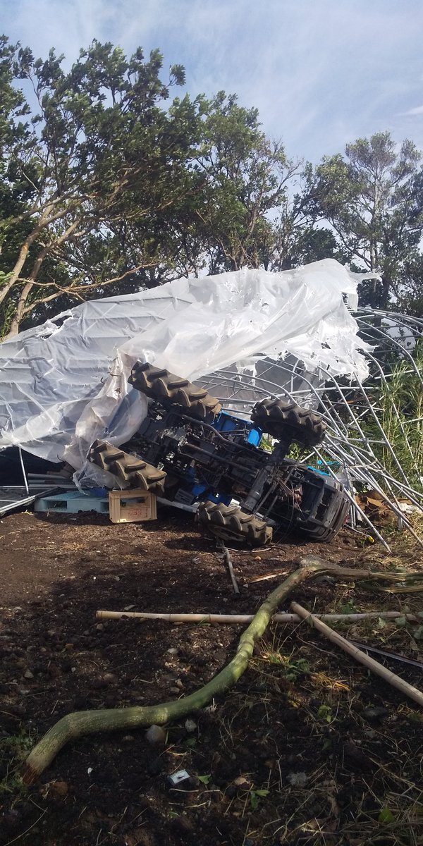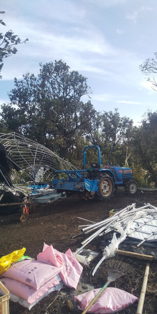 やっと起こせた❗️ 倒壊したハウスの骨組みとからまって時間がかかりました。 途中、会った人と怪我がないか安否を確認しあいました。 まだ信号もついてないけど、みんな譲り合って頑張っている🚥 #台風22号 pic.x.com/LxwvZ9zgck x.com/x6O6wCx3f3AZJs…