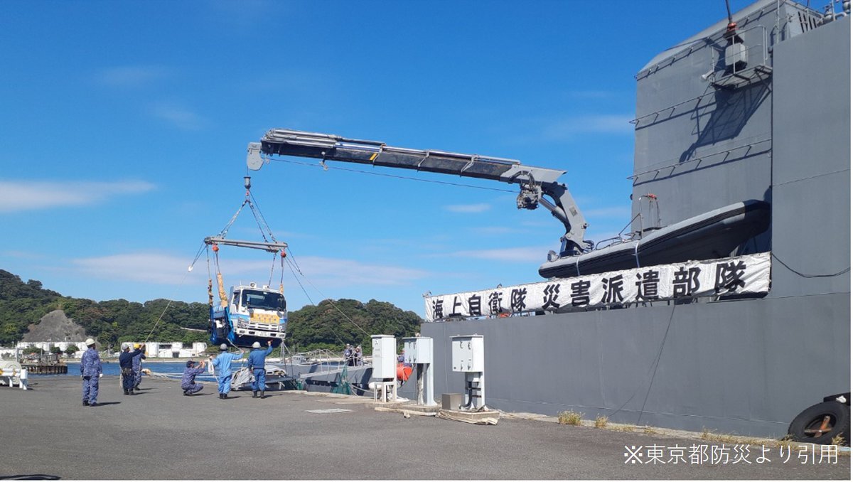 令和7年 #台風第22号 の影響により東京都 #八丈町 において停電が発生しました。9日(木)東京都知事から #海上自衛隊 横須賀地方総監(横須賀・神奈川)に対して八丈町への 給水車等の輸送支援に係る #災害派遣 要請があり、活動を開始しております。 mod.go.jp/js/pdf/2025/p2…