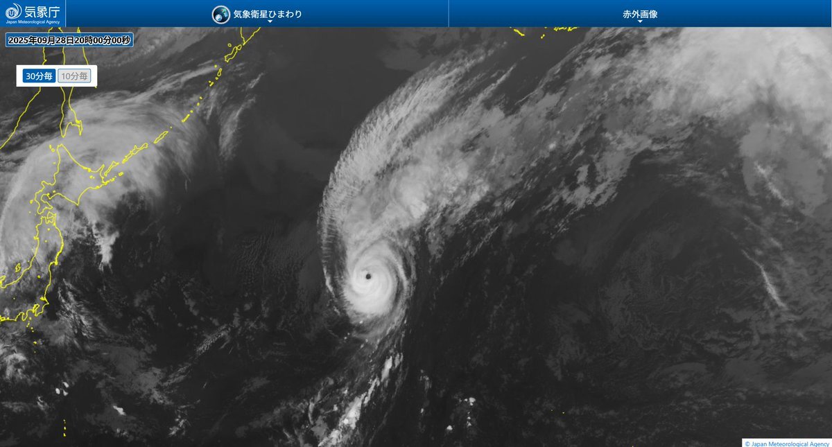 #台風19号 北緯35度を超えても「非常に強い」勢力ってヤバいな。眼もくっきりしてるし🌀海水温が高いせいか? 太平洋の彼方だからいいけど、こんなのが日本に来たら大騒ぎだな pic.x.com/DIs92Z4PJt x.com/nkm_rjna1984/s…