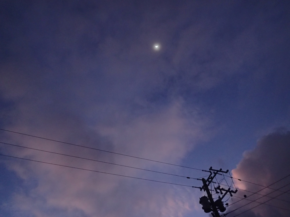 おはやうございます(Θ ω Θ)ノ ・0632 こんなですがかすかに降ってます ・0632 月がスロースタートになってきました ・0645 のぼるよー ・もう1002hpaなのであまり心配はしていない #台風26号 pic.x.com/1YhHA40gI8