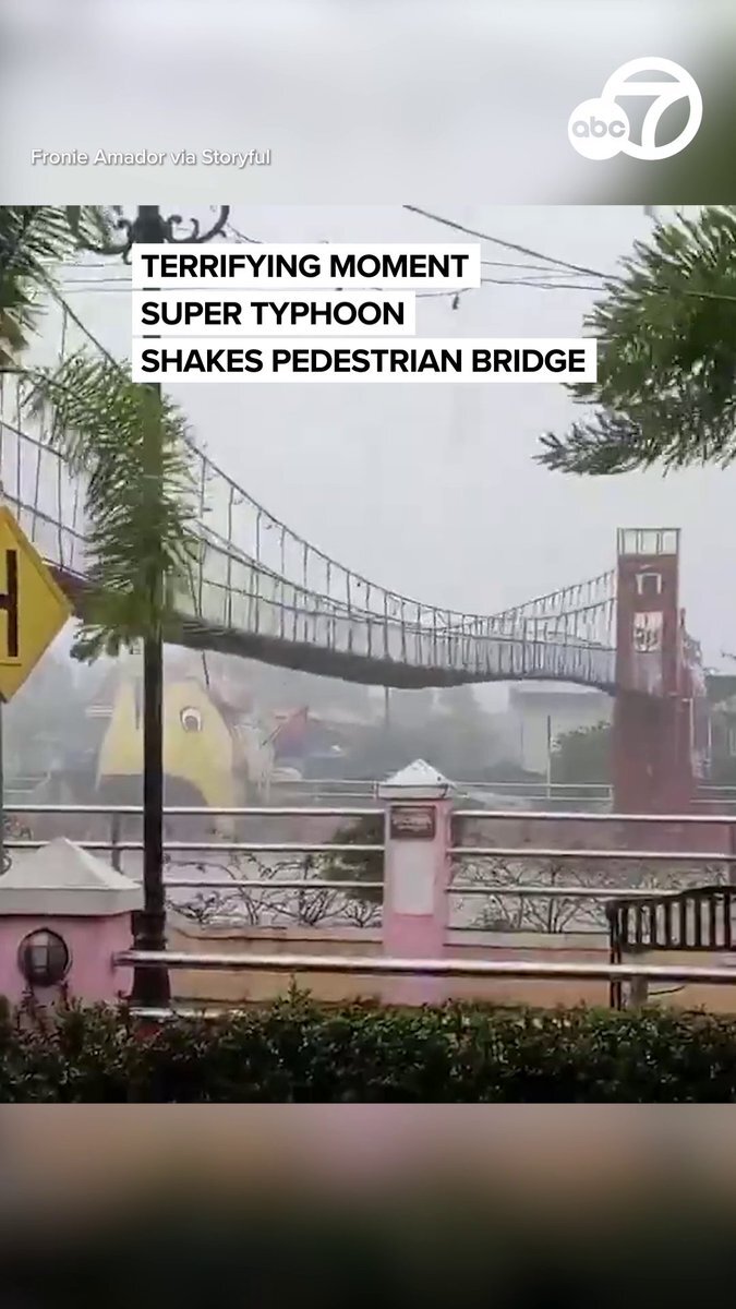 Dramatic footage captured the moment a pedestrian bridge was rattled violently by super typhoon winds in the Philippines on Sunday as Typhoon Fung-Wong made landfall -- just days after Typhoon Kalmaegi devastated the country.