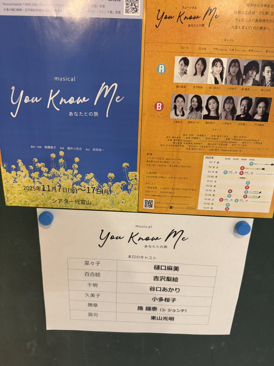 シアター代官山(劇団ひまわり)ミュージカル「You know me〜あなたとの旅〜」再演初日です。キャストと演出に変更があるので新たな気持ちで楽しみます。#ゆのみ #樋口麻美 #吉沢梨絵 #谷口あかり #オールスター合唱バトル pic.x.com/Xra135WGFh