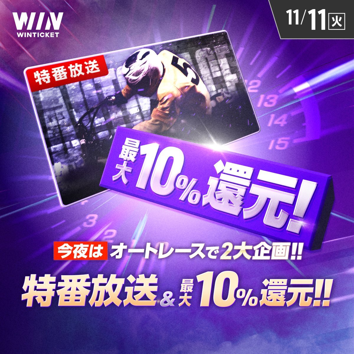 📣注目!📣 ミッドナイト競輪がない今夜は! オートレースで、特番企画 & 最大10%還元!!🔥 ①特番は、新山響平選手&吉田拓矢選手がオートレースに挑戦💪 ②最大10%還元は、還元上限なし! ③シェアするだけで、もれなく100ptもらえる企画も💰 WINTICKETでミッドナイトオートレースを楽しもう✨🏍️