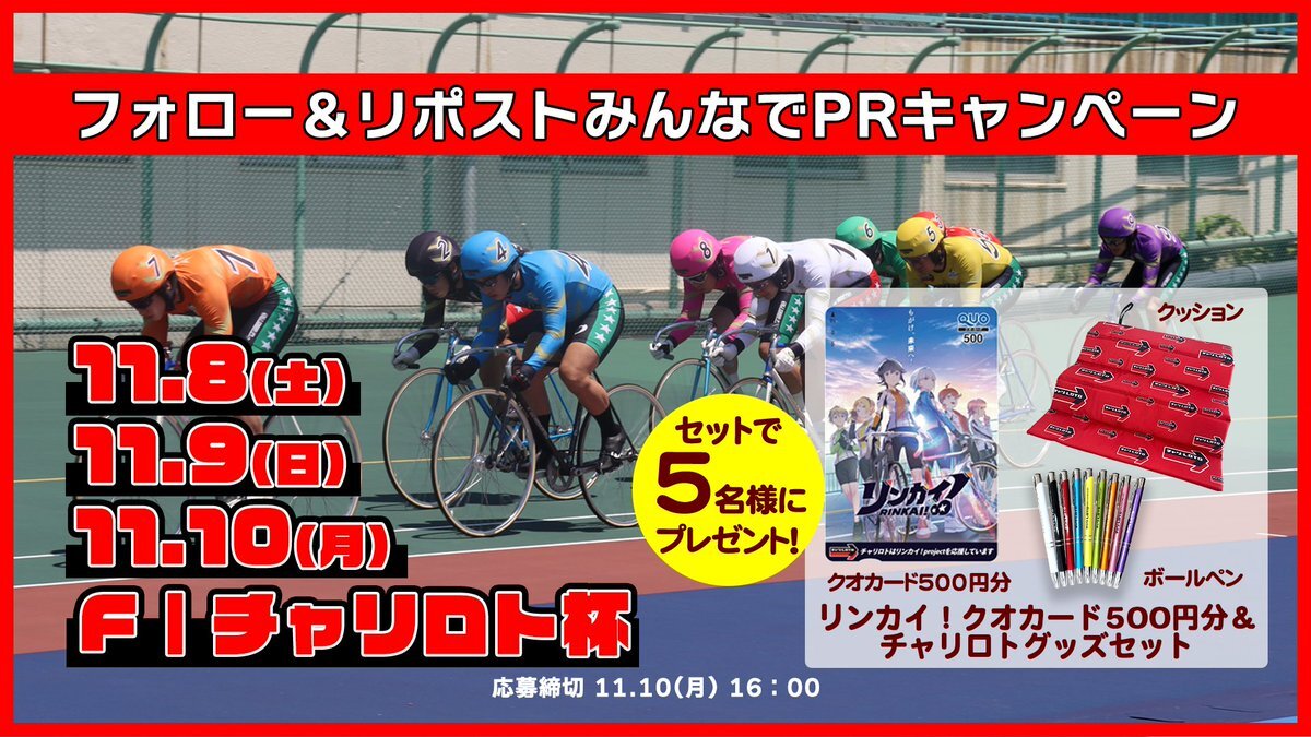 🎁\富山競輪 みんなでPRキャンペーン/🎁 富山競輪FⅠ チャリロト杯(11/8~10)をPRしようライ🚴♂️🚴♀️💨 フォロー&RPでリンカイ!クオカ&チャリロトグッズを5名様にプレゼント🤩 ◆応募方法 ①@raichan_toyamaをフォロー ②この投稿をリポスト チャリロトホームページ👀🎉chariloto.com