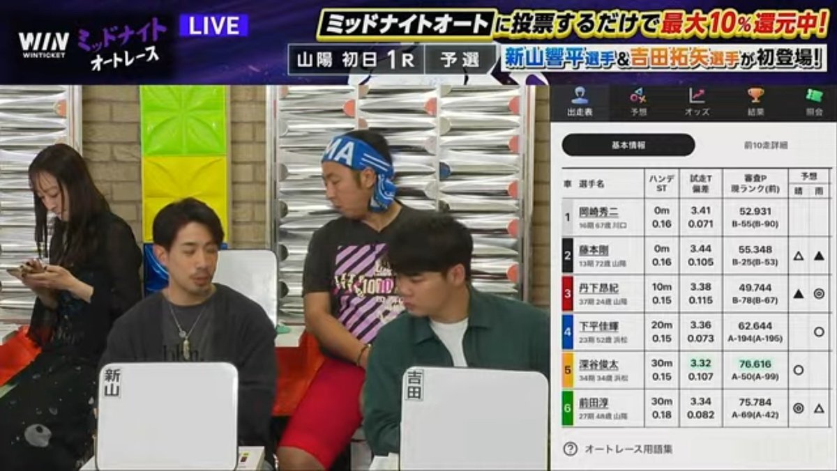 ABEMA WINTICKET ~ ミッドナイトオートレースSP ~ 山陽 オート 初日 @7k121 11/11 (火) 🈢 19:15~0:15 abema.go.link/fB9vA👔 新山響平 選手 #新山響平✨ ⌚ファッション👟チェック👖 吉田拓矢 選手 #吉田拓矢✨ pic.x.com/BHnfwTevOG x.com/bandonthewalki…