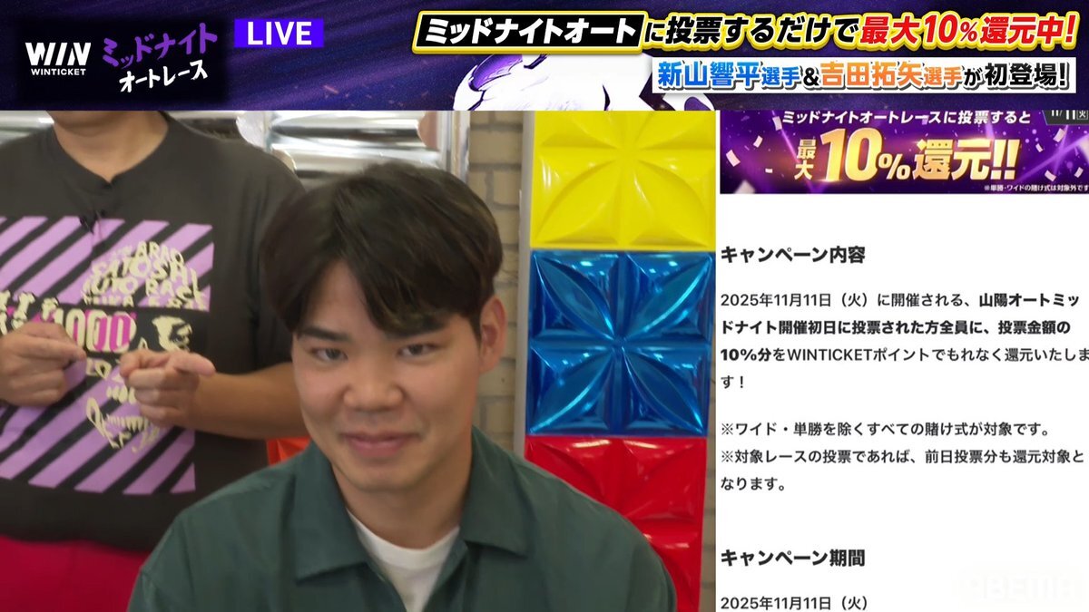 ABEMA WINTICKET ~ ミッドナイトオートレースSP ~ 山陽 オート 初日 11/11 (火) 🈢 19:15~0:15 abema.go.link/fB9vA 新山響平 選手(競輪) 出演中♪ 吉田拓矢 選手(競輪) オープニング @7k121 #新山響平🚴💨#吉田拓矢 pic.x.com/lgCOc1rxbA