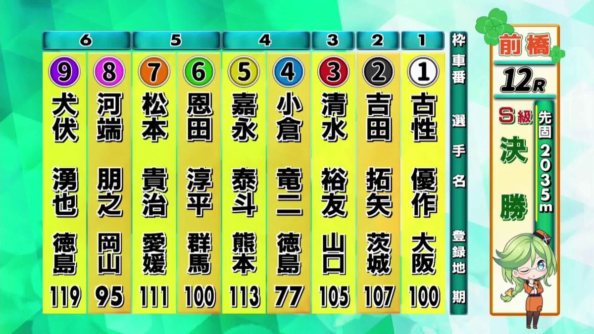 本日は『寛仁親王牌G1』ついに決勝戦! ■12R S級決勝 1 #古性優作 2 #吉田拓矢 3 #清水裕友 4 #小倉竜二 5 #嘉永泰斗 6 #恩田淳平 7 #松本貴治 8 #河端朋之 9 #犬伏湧也 発走予定時刻→16:30 #みんなの競輪 公式HP⇒bit.ly/3NMLd81 キャンペーン参加→minnano-keirin.com/announcement/8… pic.x.com/JG6DOezQ2v