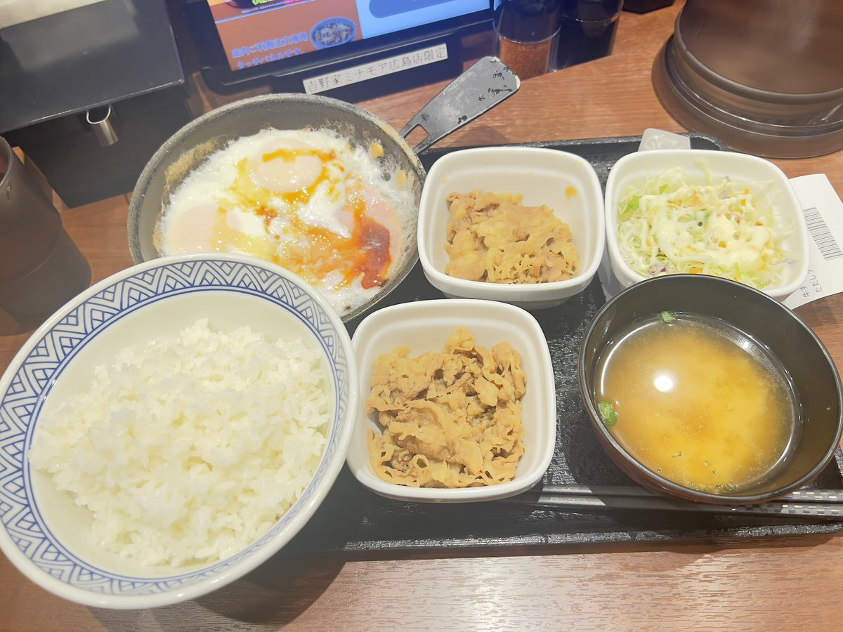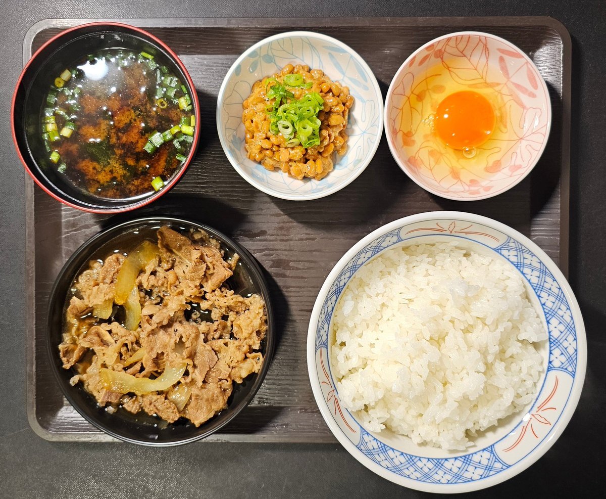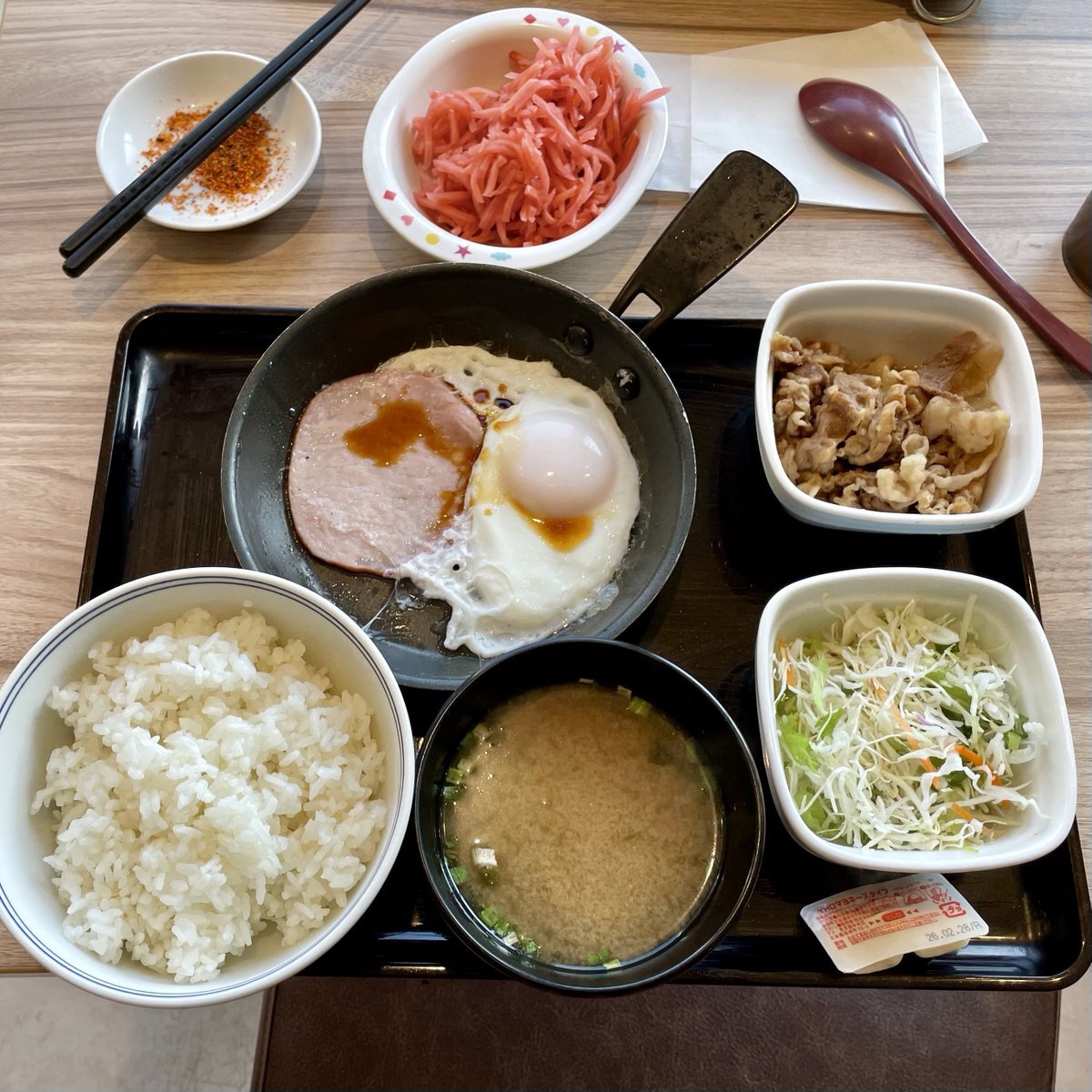 土曜日の朝食は #吉野家 ・ハムエッグ納豆定食(ご飯大盛) ・おかわりご飯(大盛) ¥468 朝食🍚目当てで訪店😊 ご飯増量・おかわり無料は嬉しいサービス🎉 おかずが無くなったのでご飯3杯目は断念🤨 コスパも良く、美味しかったです😋 ごちそうさまでした🙏 pic.x.com/gdG42f1Cir