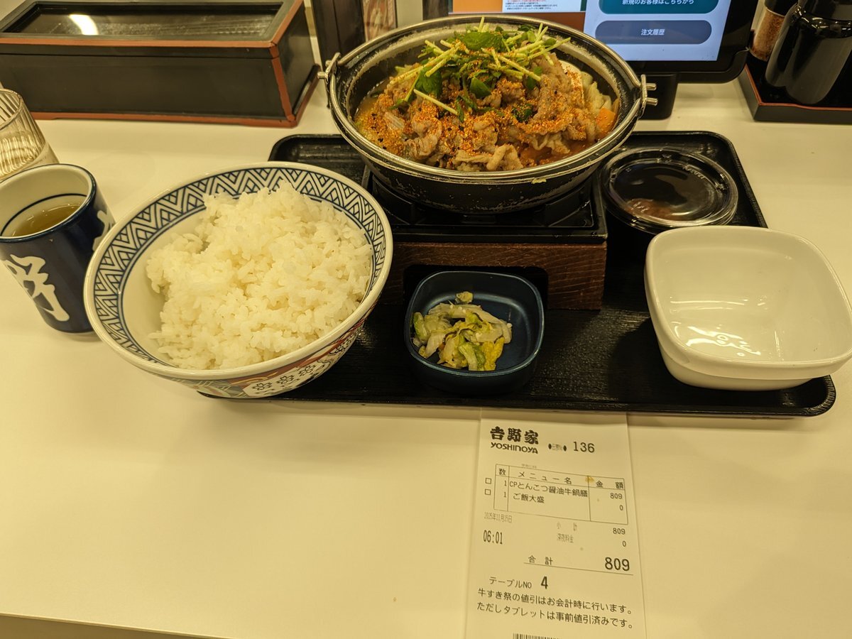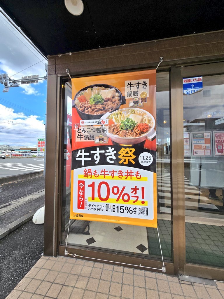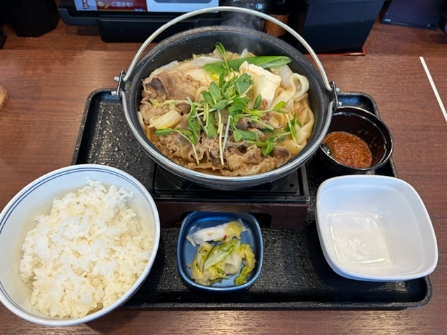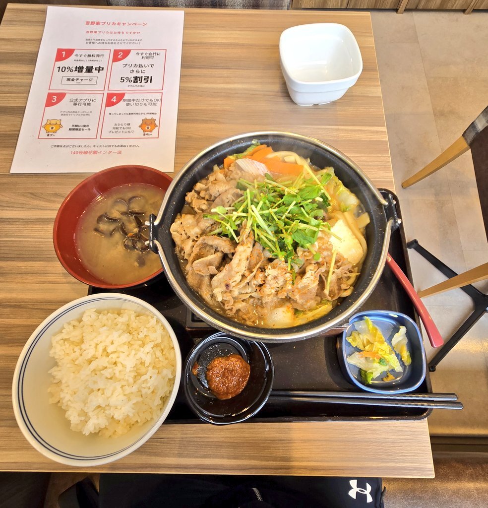 #吉野家 本日は、吉野家古市橋店さんへ 11月25日まで、10%OFFなのでお得 翌日、11時まて使える100円引きクーポン貰えます 牛すき鍋膳肉2倍盛り ¥1103− pic.x.com/HMtlAt7fjT