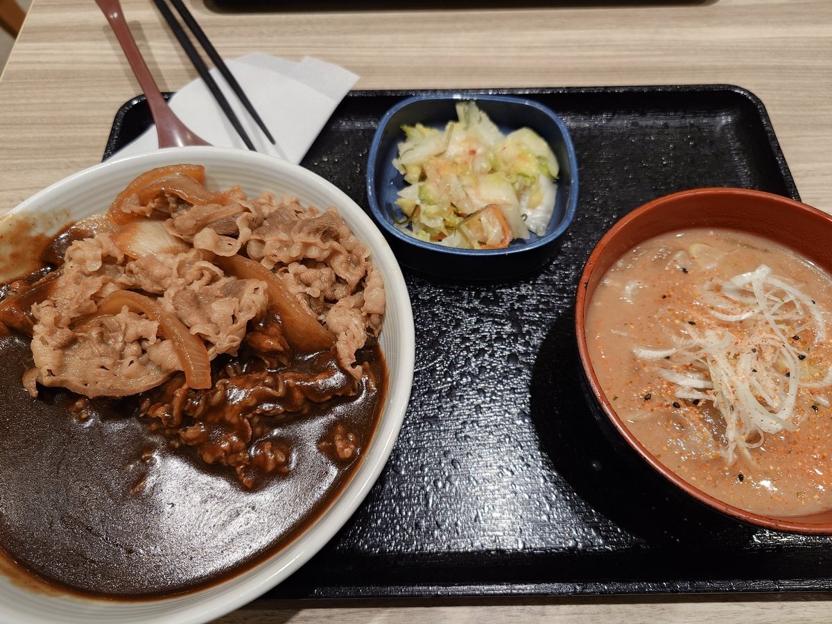 金持ちに貰った、今月末迄有効の #吉野家 #株主優待券 2千円持って、吉野家での初 #カレー 美味くも不味くもない…😅けど…お金持ちは吉牛には行かんのじゃ、なぁ😲? pic.x.com/a6juCVX2tq