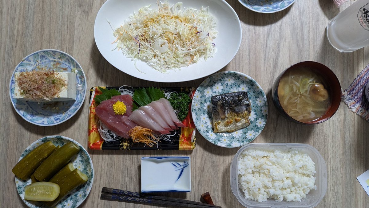 サバ塩焼き 刺身 冷奴 ぬか漬け コールスロー 味噌汁 ご飯 #4毒抜き #税は財源じゃない #日本誠真会は嘘をつかない #政策より誠実 #日本誠真会はカッコいい #吉野敏明を総理大臣に pic.x.com/DajNlagfgW