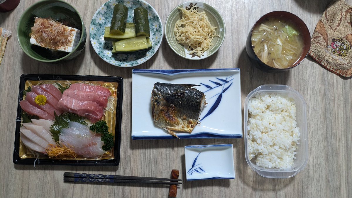 サバ塩焼き 刺身 (マグロ・カツオ) ぬか漬け 冷奴 味噌汁 ご飯 #4毒抜き #税は財源じゃない #日本誠真会は嘘をつかない #政策より誠実 #日本誠真会はカッコいい #吉野敏明を総理大臣に pic.x.com/fdE3iF8X63