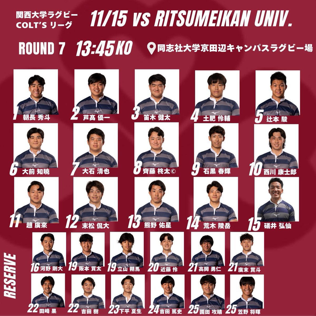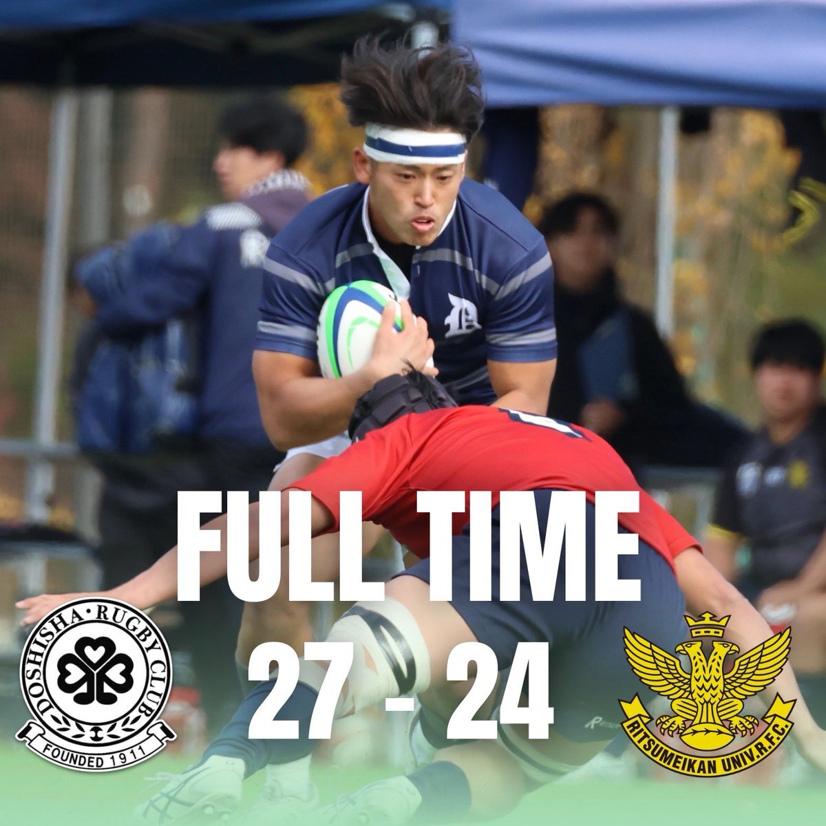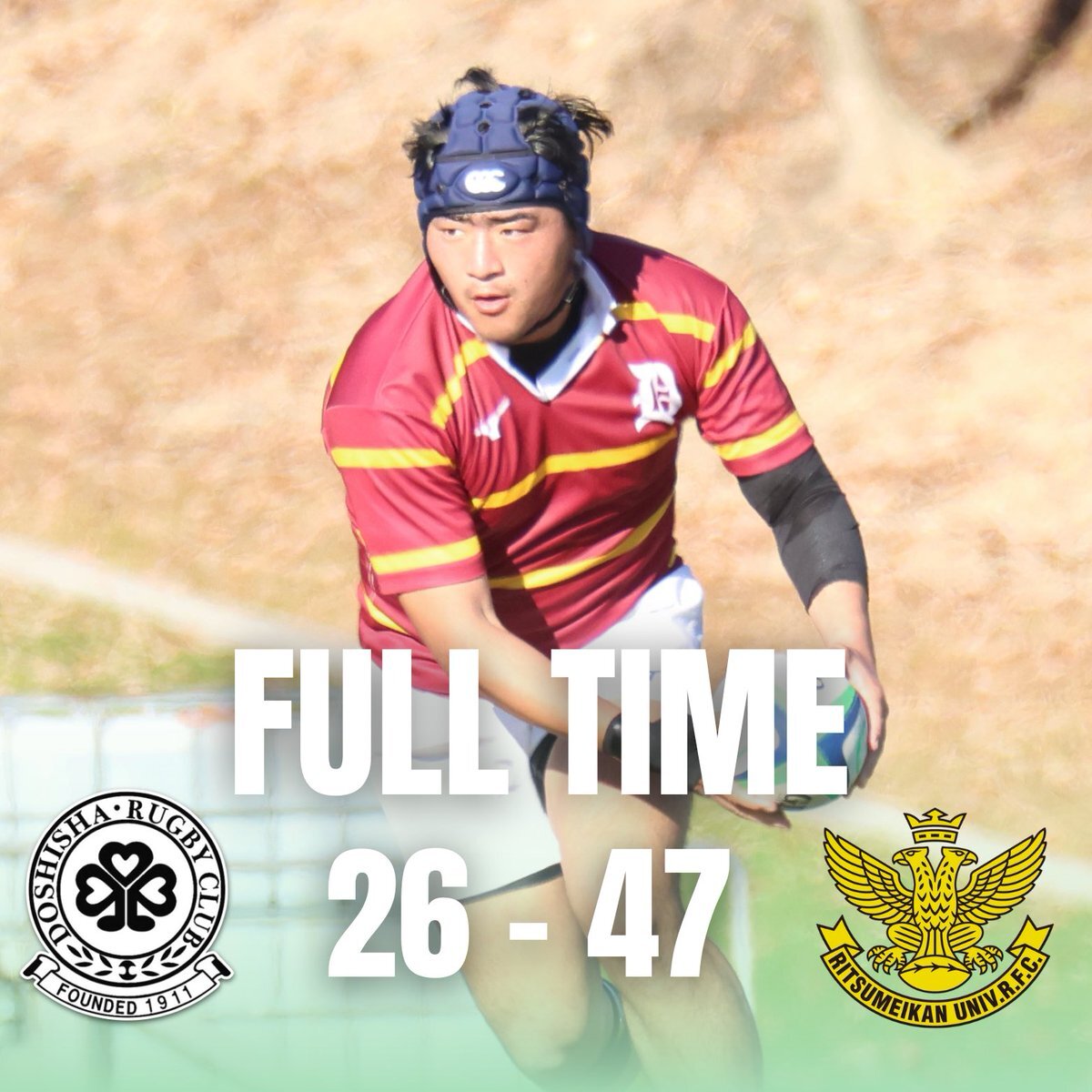 【FULL TIME】 《関西大学ラグビーJr.リーグ、Col.リーグ》 🆚立命館大学Jr. 同志社 27-24 立命館 🆚立命館大学Col. 同志社 26-47 立命館 たくさんのご声援、ありがとうございました。 #同志社 #ラグビー #doshisha #rugby #大島組 #teamOHSHIMA pic.x.com/15LfR4p5WP