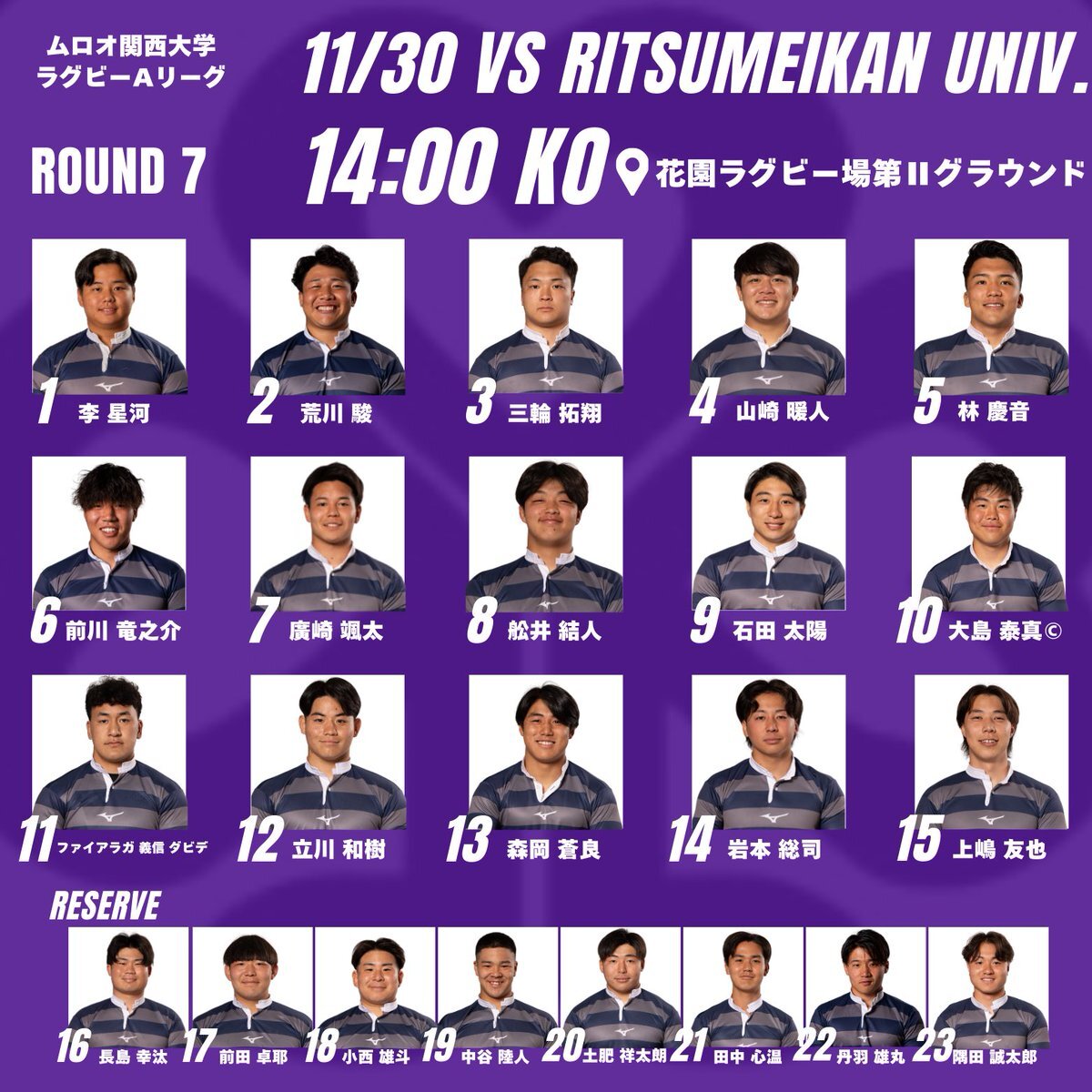 本日の試合情報です。 11/30(日) 2025ムロオ関西大学ラグビーAリーグ最終節 🆚摂南大学 ⏱11:45K.O. 🏟東大阪市花園ラグビー場第ニグラウンド #KURFT #関西大学体育会ラグビー部 #関西大学 #team奥平 #関大style #rugby #2025年度ムロオ関西大学ラクビーAリーグ #同志社 #立命館 #関西学院 pic.x.com/9EuX6khjFZ