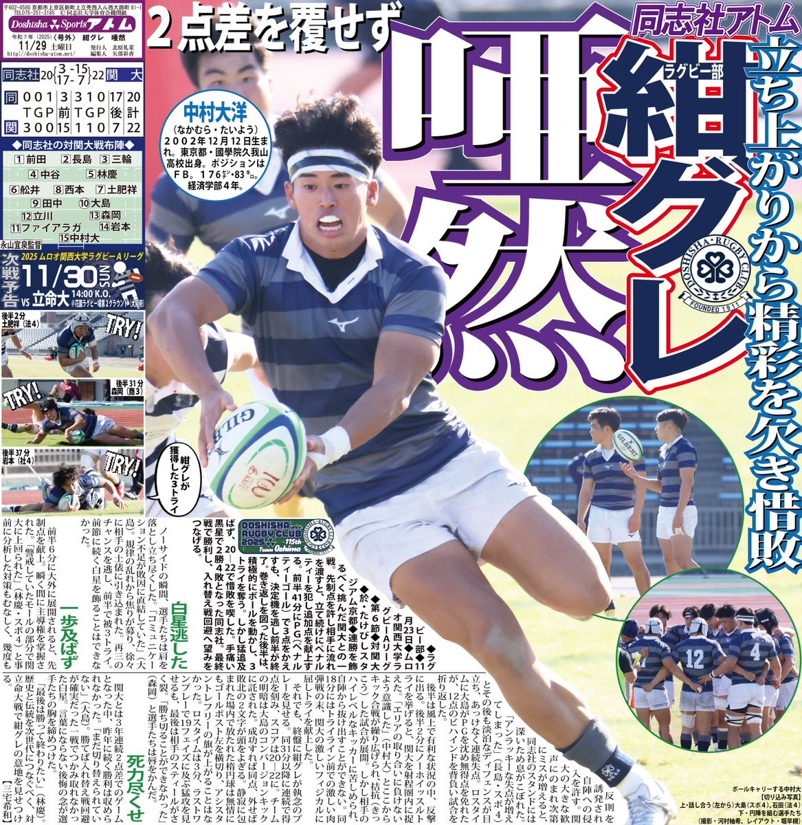 【ラグビー部】立命館破り4位【リーグ戦3勝目】 「スポニチアネックス」のサイトに、ラグビー部が立命館を29―19で破り、リーグ戦3勝目を挙げたという記事が掲載されています。 #同志社 #ラグビー部 sponichi.co.jp/sports/news/20…