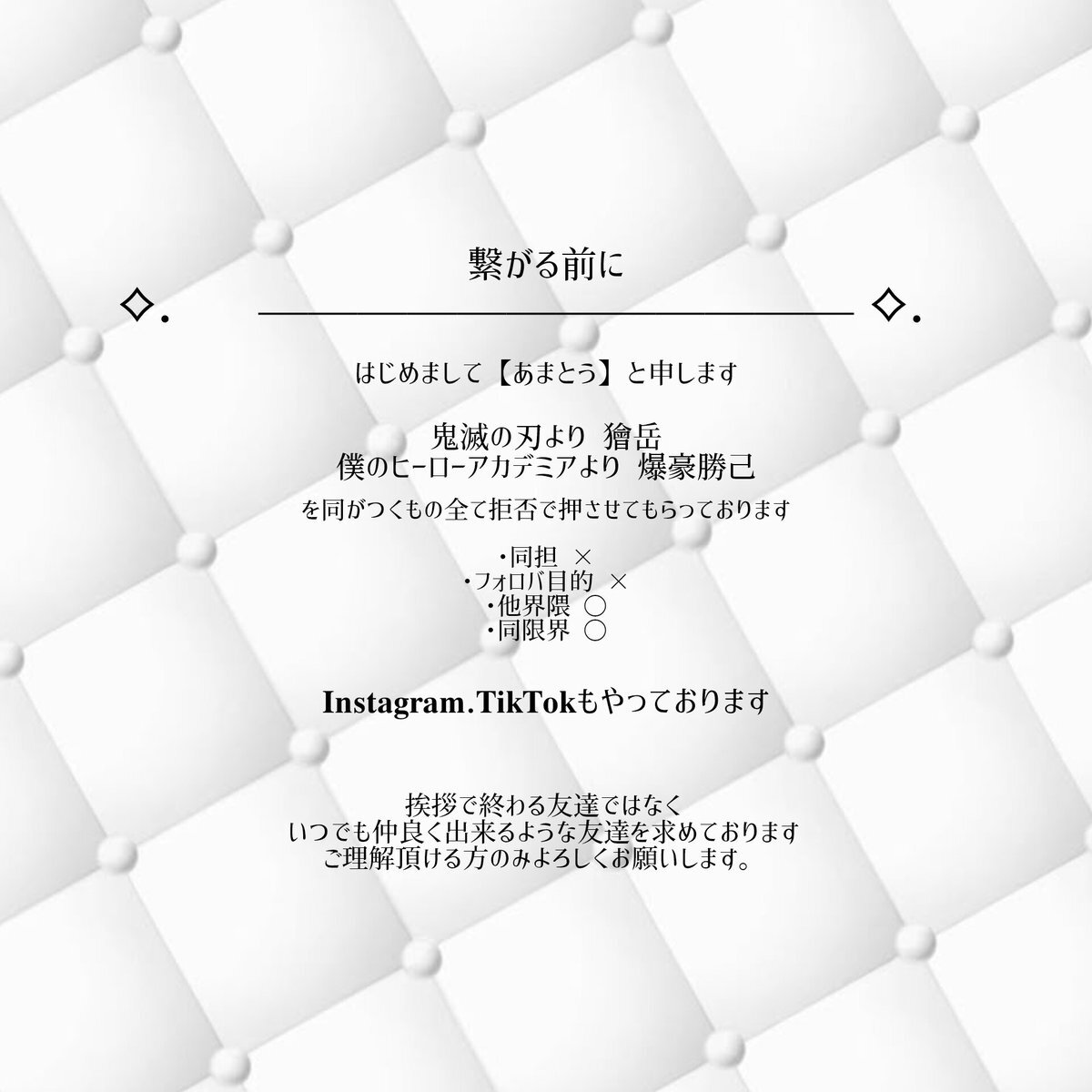 💥タグ💥 界隈関係なくお相手様大好きな方とのご縁求めてます! 相互各1 必読lit.link/bkg420 ♡で気になり様@ でお迎えいたします! #一途嫁さんと繋がりたい #夢女子さんと繋がりたい #同担拒否さんと繋がりたい #ヒロアカ夢女子さんと繋がりたい #他界隈夢女子さんと繋がりたい pic.x.com/aXXFrWHXUz