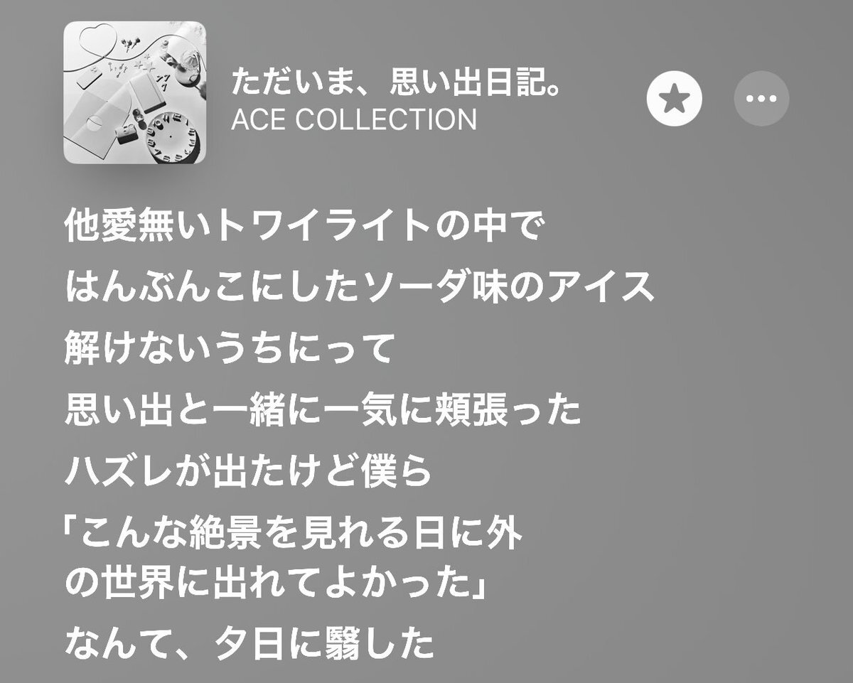 "ただいま、思い出日記" 青春曲すぎる( ߹꒳߹ )♡ 走馬灯のように 学生の頃を思い出した 天才すぎるって。もう流石としか言えない。◎大先生! #ACECOLLECTION #ただいま思い出日記 #名前のない気持ち 。#ACEの音