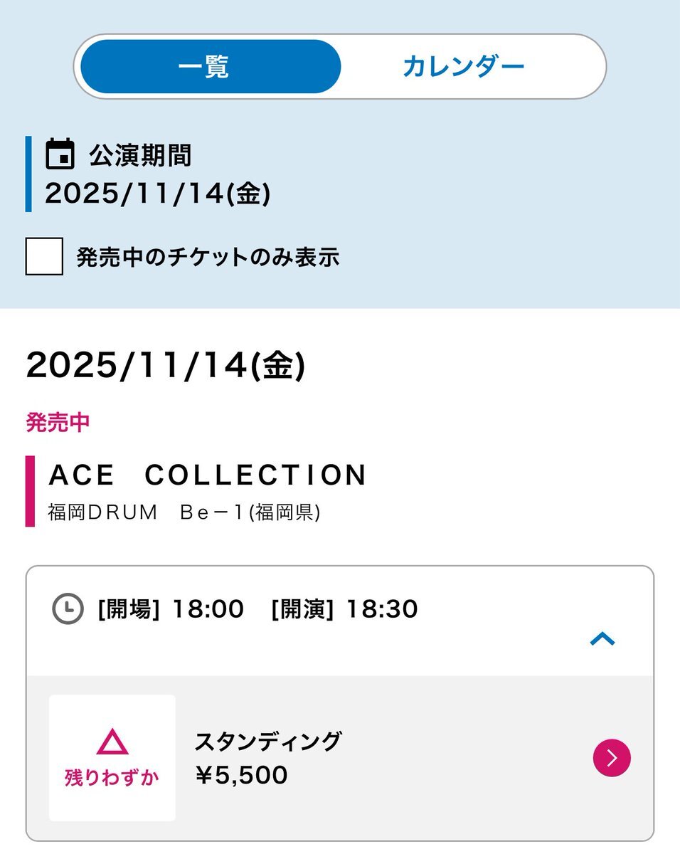 いよいよ本日からツアースタート❤️🔥 福岡公演!!!! 当日券 ¥6,000 17:30〜 販売スタート 福岡のみなさま ぜひお待ちしております🙌🏻 #ACECOLLECTION #名前のない気持ち。 pic.x.com/x7yQGgt39m