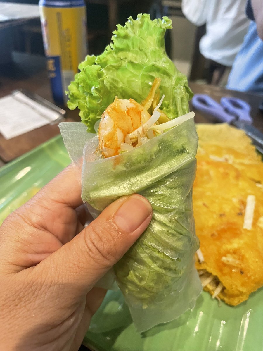 \春巻き/風にいただくバインセオに驚き🫢お盆に訪れたベトナム🇻🇳ダナンの有名店にて。バインセオを生春巻きで包みとは斬新✨春巻き文化の鼓動を感じる。カンボジアにもあるかもしれないが私はその食し方を見聞きしたことがない。#名前忘れた #観光客たくさん #韓国人たくさん #ダナン pic.x.com/KdtpPHnQEi