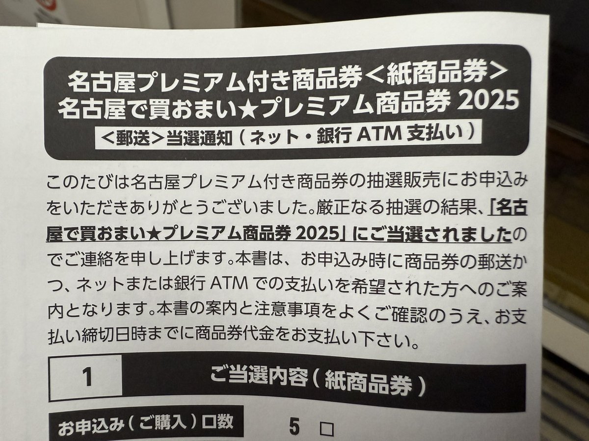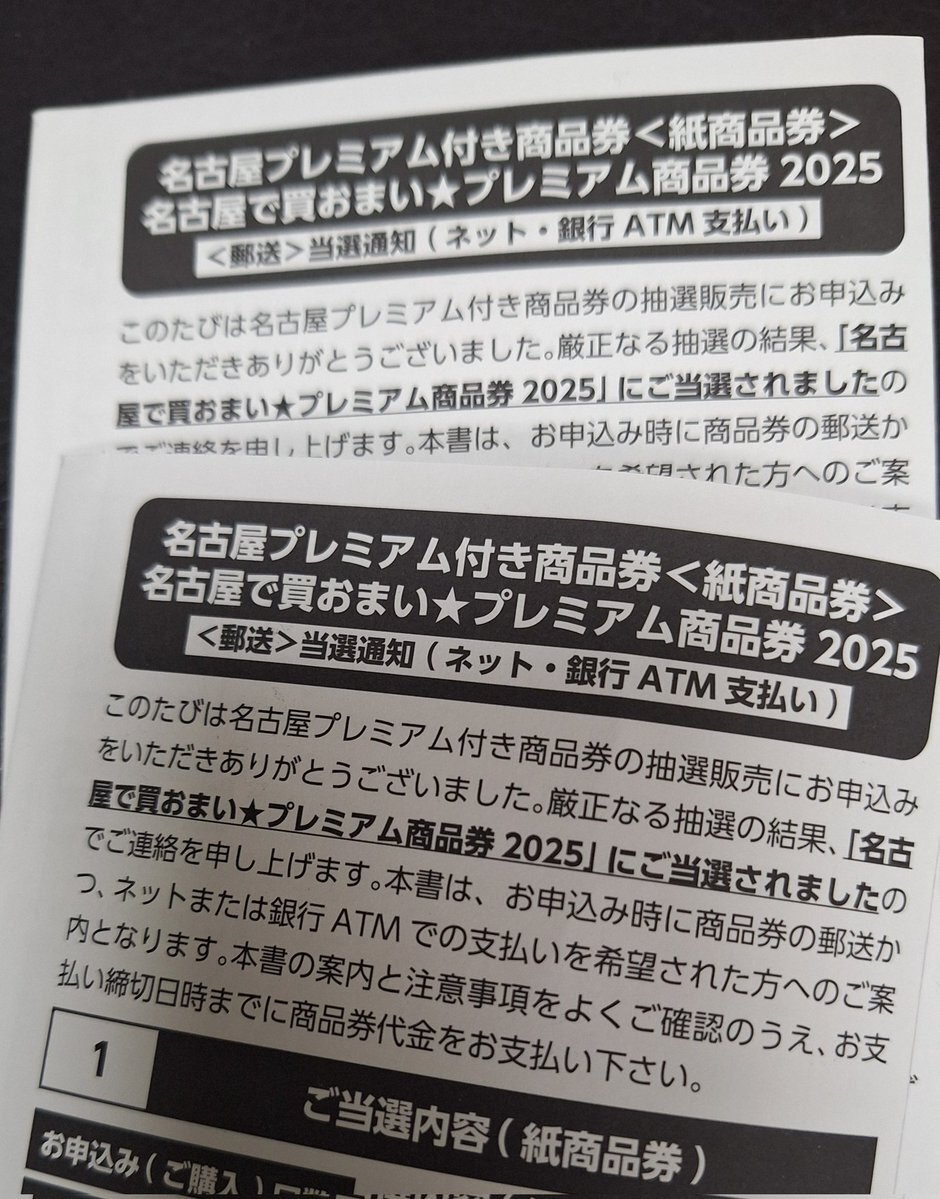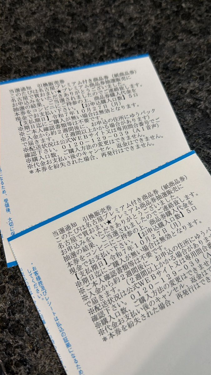名古屋プレミアム商品券の 当選ハガキがポストに届いてました〜 昨年はハズレたから 今年こそは! って思ってたから嬉しい😄 5口なのでずいぶん助かります。 年末にちょっとだけ 贅沢して牛肉買おうかな いつもは、鶏肉と豚肉のみです #名古屋プレミアム付き商品券