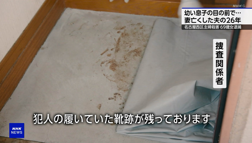 平成11年(1999年) 名古屋市西区主婦(当時32歳)殺人事件 本日 2025年10月31日 殺人罪で 名古屋市南区 アルバイト女性容疑者(69歳)を 通常逮捕 なんで26年も経って今さら 警察に出頭したんやろ? 被害を免れた息子さんが語る 凄惨な殺害状況 #名古屋市主婦殺人事件 #NHK pic.x.com/jkacjVOlbS