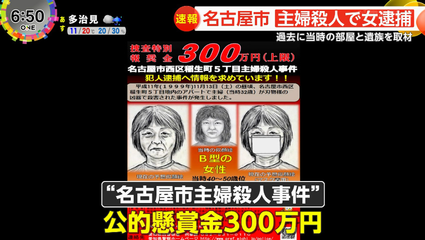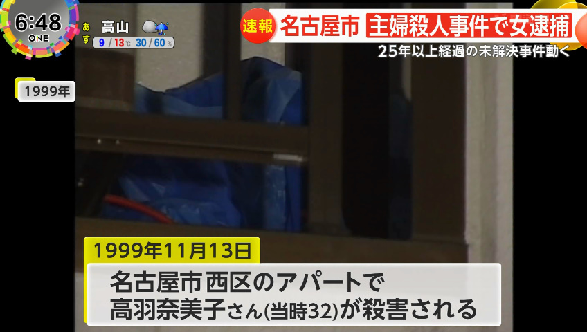 【速報】 名古屋市西区の主婦殺害事件で60歳代の女逮捕 25年以上経過の事件 #名古屋市主婦殺人事件  #名古屋 pic.x.com/lSwqsFT32l