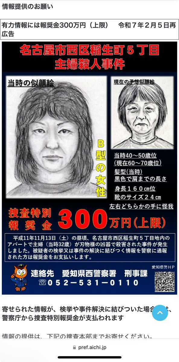 【発表】1999年11月の主婦殺人事件で容疑者逮捕 愛知・名古屋 news.livedoor.com/article/detail… この事件は1999年11月13日、名古屋市西区稲生町のアパートで発生。主婦が刃物で殺害された。警察はのべ10万人近い捜査員を動員していたが、愛知県警は容疑者を逮捕した。